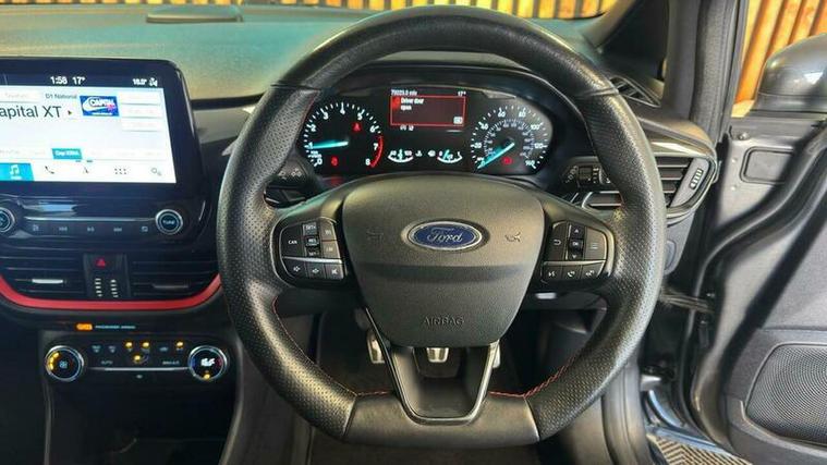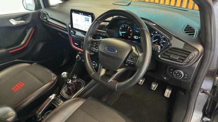 This 2020 Ford Fiesta ST-Line X comes with one previous owner, and the vehicle was last serviced on 2nd April 2026 at 79, 223 miles, including new timing belt, and comes with a 3 month warranty providing added peace of mind. offering excellent provenance. Powered by a responsive 1.0L petrol engine, this Euro 6 compliant model delivers an impressive 0-62mph acceleration in just 9.0 seconds, a testament to its dynamic performance. The ST-Line X trim ensures a sporty aesthetic and includes desirable features such as a rear view camera with parking assistance, and rear parking distance sensors. Inside, you'll find partial leather upholstery with the ST-Line X Red Pack, creating a distinctive black and red theme, complemented by electronic automatic air conditioning for your comfort.