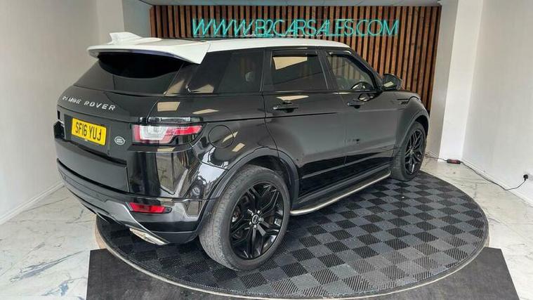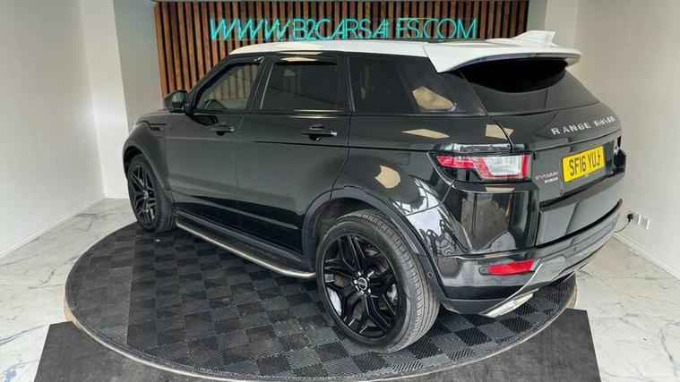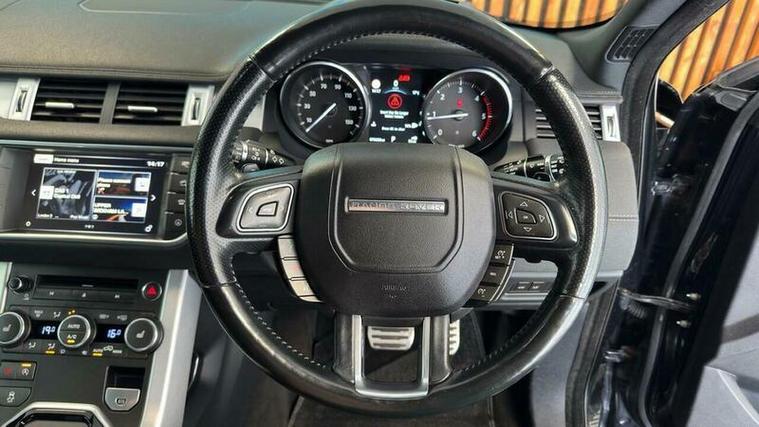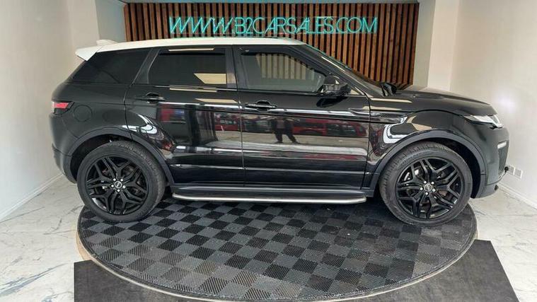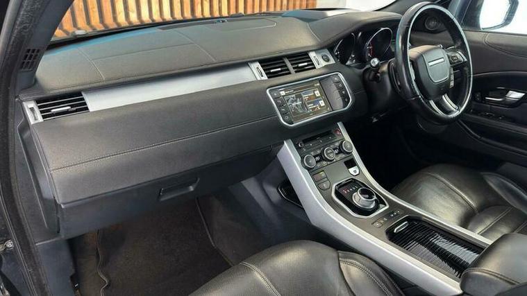 This 2016 Land Rover Range Rover Evoque TD4 HSE Dynamic Lux boasts a recent service completed on 2026-04-03 at 76, 650 miles, including new timing chain, offering peace of mind with a 6 month warranty. This Four Wheel Drive model features a 2.0L Diesel engine, meeting Euro 6 emissions standards. Inside, you'll find a 14 way power driver's seat with lumbar support and memory, a Head Up Display, reverse camera, Meridian sound, interior ambient lighting and Bluetooth phone connectivity. The exterior is enhanced by a Fuji White contrast painted roof and matching spoiler, and parking is made easier with rear parking assistance.
