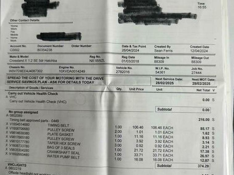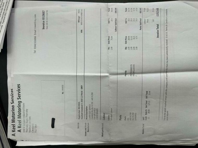 Basford Motors Ltd delighted to offer this stunning Vauxhall Crossland X 1.2 SE SUV 5dr Petrol Manual Euro 6 (81 ps) This 2018 Vauxhall Crossland X SE has been meticulously maintained with a full service history including TIMING BELT / WATERPUMP DONE AT 88309 MILES, most recently serviced on 2026-04-10 at 119, 294 miles, and benefits from having only one owner from new. This Euro 6 compliant 1.2L petrol model is equipped with a front camera system for parking assistance, electronic climate control with air conditioning, and the R4.0 IntelliLink infotainment system featuring Bluetooth connectivity. You'll also appreciate the automatic lighting control and the convenience of the Sight and Light Pack, ensuring the headlights turn on automatically.2 keys