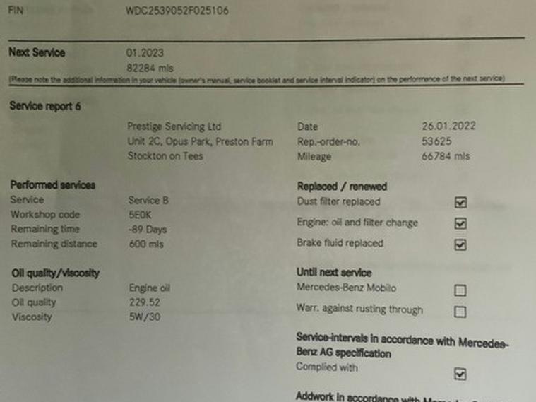 This car comes with 5 seats, Grey, 12V Socket in Luggage Compartment, 18in Alloy Wheels - 5-Spoke Design - Painted Vanadium Silver, 7in Colour Display - High-Resolution, ABS - Anti-Lock Braking System, ASR - Acceleration Skid Control, ATTENTION Assist, Active Bonnet - Pedestrian Safety which Detects an Impact and Raises Bonnet, Active Light System, Active Park Assist with Parktronic, Adaptive Brake Lamps, Adaptive Brake System with Hold Function and Brake Drying Function, Agility Control - Comfort Suspension, Airbags - Drivers Kneebag, Airbags - Dual Stage - Driver, Airbags - Dual Stage - Front Passenger, Alarm System with Interior Protection, Audio 20 Radio-CD, Automatic Child Seat Recognition Sensor, Automatically Dimming Rear View Mirror, Bluetooth Interface with Hands-Free Function and Music Transfer, Chrome Trim on Front and Rear Bumper and Side Strips, Collapsible Box, Collision Prevention Assist Plus, Courtesy Lights in Doors, Crosswind Assist, Cruise Control with SPEEDTRONIC Variable Speed Limiter, Cup Holder in Centre Console x2, DAB Digital Radio Tuner, Daytime Running Lights - LED, Dividing Net for Luggage Compartment Partition and Occupant Protection, Door Centre Panel - Black, Door Mirrors - Drivers Automatically Dimming, Door Mirrors - Electrically Folding, Door Sill Panels - Mercedes-Benz Lettering, Door Trim at Beltline - Black, Dynamic Select with a Choice of Driving Modes - Comfort - ECO - Sport - Sport Plus - Individual, EASY-PACK Powered Tailgate, ESP - Electronic Stability Programme, ESP Curve Dynamic Assist, Easy-Pack Load Compartment Cover, Electric Parking Brake, Electric Windows - 4 - With One-Touch Opening and Closing - including Obstruction Sensors, Enhanced Foglight System, Exhaust System - Visible Tail-Pipe Integrated into Rear Bumper, Floor Mats - Velour, Footwell Lighting - Front and Rear, Front Seats - Electrical Height and Backrest Adjustment, Headlamp Assist - Automatic Headlamp Activation, Headlights - LED, Heated Front Seats, Heated Windscreen Washer System, ISOFIX Child Seat Fixing Points in Rear - Two Outer Seats, Illuminated Glove Compartment, Immobiliser, Instrument Cluster with 5.5in TFT Multifunction Display, Interior Lighting - Interior Door Handles, Interior Lighting Package, KEYLESS-GO Starting Function, LED Tail Lights, Live Traffic Information, Load Compartment - Lockable Floor, Lockable Glove Compartment, Lower Dashboard Trim - Black, Lumbar Support - Four Way for Front Seats, Map Pockets on Front Seat Backrests, Media Interface, Mercedes Me Connect, Mirror Package, Outside Air Temperature Gauge, Parking Sensor - Front, Parking Sensor - Rear, Power Steering - Direct Steer System with Speed Sensitive, Privacy Glass - From B-Pillar Backwards, Radiator Grille with Integrated Star - Two Chrome-Trimmed Louvres, Rain Sensing Windscreen Wipers, Rear Reading Lights - LED, Rear Seat Belts Status Indicator, Remote Boot Release, Remote Central Locking, Retaining Net on Luggage Compartment Floor, Reversing Camera, Roof Lining - Crystal Grey, Roof Rails - Aluminium Finish, Satellite Navigation - Garmin Map Pilot, Seats - Cushion Depth Adjustment, Seats - Electrically Adjustable Driver and Passenger, Seats - Power Release for Rear Seat Backrests, Service Indicator ASSYST, Speakers with Frontbass x5, Steering Column - Manually Adjustable for Height and Reach, Steering Column Gear Selector, Steering Wheel - 3-Spoke Trimmed in Leather, Steering Wheel - Direct Select Gearshift Paddles, Steering Wheel - Multi-Function, Stowage Package, Sun Visors with Illuminated Vanity Mirrors, Thermatic - Automatic Climate Control, Tinted Glass All Round, Tirefit Tyre Sealant Kit, Touchpad, Trim - Black Ash Wood, Tyre Pressure Monitoring System, USB Ports in Centre Console x2, Upper Dashboard Trim - Black, Welcome Home Function Lights, Windowbags for Driver-Front Passenger and Rear Passengers, eCall - Emergency Call System,