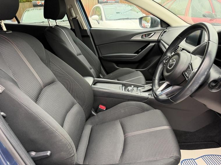 Boasting exceptionally low mileage for its age, this 2017 Mazda3 SKYACTIV G SE L Nav presents a superb ownership opportunity. With only one previous owner and a full service history culminating in a recent service at 42, 000 miles on 13th April 2026, this Euro 6 compliant 2.0 litre petrol model has been meticulously maintained. The MOT remains valid until April 2027, and it comes with a 3 month warranty for your peace of mind. Inside, you'll find integrated Bluetooth for seamless connectivity, heated front seats with three stage settings for comfort in any weather, and dual zone climate control air conditioning to keep everyone happy. Practicality is also key, with rear parking sensors to aid manoeuvring and dusk sensing headlights that automatically illuminate when needed., , This Mazda3 stands out with its impressive 42, 000 miles, significantly less than typically expected for a vehicle of this age, indicating it has been used sparingly. Its low insurance group rating further enhances its appeal as an economical choice. You'll also appreciate the generous boot space, making it ideal for shopping trips or luggage. For those who enjoy a responsive drive, it offers an acceleration of 0 to 62 miles per hour in 10.4 seconds, demonstrating a good balance of performance and efficiency., 3 months warranty, Next MOT due 12/04/2027, Last serviced on 13/04/2026 at 42, 000 miles, Full service history, Excellent bodywork, Interior - Excellent Condition, Tyre condition Excellent, 5 seats, Blue, 1 owner, 16in Alloy Wheels, 7in Colour Touch-screen Display, AM-FM-DAB Radio - Single CD Player-MP3 Audio System with 6 Speakers, Adjustable Speed Limiter, Aha App and Stitcher App Integration, Analogue Speedometer, Anti-lock Braking System with Electronic Brake-force Distribution and Emergency Brake Assist, Armrest - Front Centre with Slide Function, Auto Dimming Rear View Mirror, Auxiliary - AUX - and Two USB Input, Cruise Control with Manual Speed Adjustment, Dashboard Panel - Silver, Dome Interior Courtesy Light with Integrated Spotlight, Door Mirrors - Electrically Adjustable - Heated - Auto Power Folding with Integrated Indicator Lights, Driver and Front Passenger Airbags, Dual Chrome Exhaust Tailpipe, Dual-Zone Climate Control Air Conditioning, Dynamic Stability Control with Traction Control System, Electric Power Assisted Steering - EPAS, Electric Windows - Front and Rear with One Touch Auto Up and Down on Drivers Side, Electronic Parking Brake with Auto-Disengage Function, Emergency Stop Signalling System - ESS, Emergency Tyre Repair Kit, Engine Start-Stop Button, Front Fog Lights - LED, Front Passenger Airbag Cut-Off Switch, Front Passenger Seat - Manual Height Adjustment, Front Side Airbags, Front and Rear Curtain Airbags, Glovebox with Light, Grab Handles - Front Passenger and Two Rear with Coat Hooks, Halogen Daytime Running Lights, Head Restraints - Rear, Headlights - Coming-Leaving Home, Headlights - Dusk-Sensing Lights, Headlights - Halogen with Manual Headlight Levelling, Heated Front Seats with 3-Stage Settings, Hill Hold Assist, ISOFIX Child Seat Anchorage for Outer Rear Seats, Integrated Bluetooth, Leather-wrapped Gear Knob and Handbrake, Luggage Compartment - Light, Multimedia Commander, Privacy Glass - Rear and Rear Side Windows, Rain-Sensing Front Wipers, Rear Parking Sensors, Rear Seats - Centre Armrest with Two Cupholders, Remote Central Locking with Deadlocking, SKYACTIV-Body Engineered Triple H Body Structure to Help Protect Occupants from Impact Forces, Satellite Navigation System, Seatback Pocket - Rear of Front Passenger Seat, Seatbelts - Front 3-point - ELR - x2 with Pre-tensioners and Load-limiters - Height-adjustment, Seatbelts - Rear 3-point - ELR - x3 with Pre-tensioners, Seatbelts - Reminder Screen with Audible Warning, Seats - 60-40 Split Folding Rear, Seats - Drivers Manual Lumbar Adjustment, Seats - Drivers Manual Slide-Recline and Height Adjustment, Self-Supporting Rigid and Torsion-Resistant All-Steel Body with Defined Crush Zones for the Front and Rear Sections - Stable Passenger Safety Cell with Side Impact Reinforcement in the Doors, Shark Fin Antenna, Smart City Brake Support, Steering Wheel - Leather Wrapped, Steering Wheel - Mounted Audio and Bluetooth Controls, Steering Wheel - Telescopic and Tilt Adjust, Storage Spaces - Door Pockets, Storage Spaces - Front Centre Console with Two Cupholders, Storage Spaces - Inside Front Centre Armrest, Sun Visors - Drivers and Front Passengers, Sunglasses Holder, Thatcham Category 1 Alarm and Immobiliser, Trip Computer, Tyre Pressure Monitoring System, USB Audio - iPod Connectivity, Wipers - Front Adjustable Speed with Intermittent, Wipers - Rear Adjustable Speed with Intermittent, AA Trusted Dealer, ALL MAJOR CARDS ACCEPTED, OPEN 7 DAYS A WEEK, Visit our website for more stocks.,