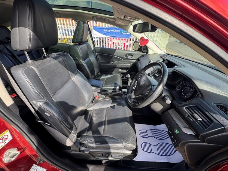 2012 (62) Honda CR-V 2.2 i-DTEC EX 5dr in Passion Red. 3 Owner Car, 2 Keys and Full Service History (12 Services). Runs and Drives brilliantly. Ultra reliable chain driven 2.2 i-DTEC diesel Honda engine easily capable of 250, 000+ miles. Great colour and in good condition throughout. Top spec EX model with Navigation, Reverse camera, Panoramic glass roof with electric blind, Power folding tailgate, Economy mode, Heated electric heated seats, Bluetooth connectivity, DAB Radio, Front and rear parking sensors, 18 inch alloy wheels, Automatic lights/wipers and more. 12 Months MOT, Service and 6 Months Warranty with the sale. A great vehicle for those seeking a 4 wheel drive SUV excelling in practicality, reliability, safety, economy (40+ MPG). Finance Available.