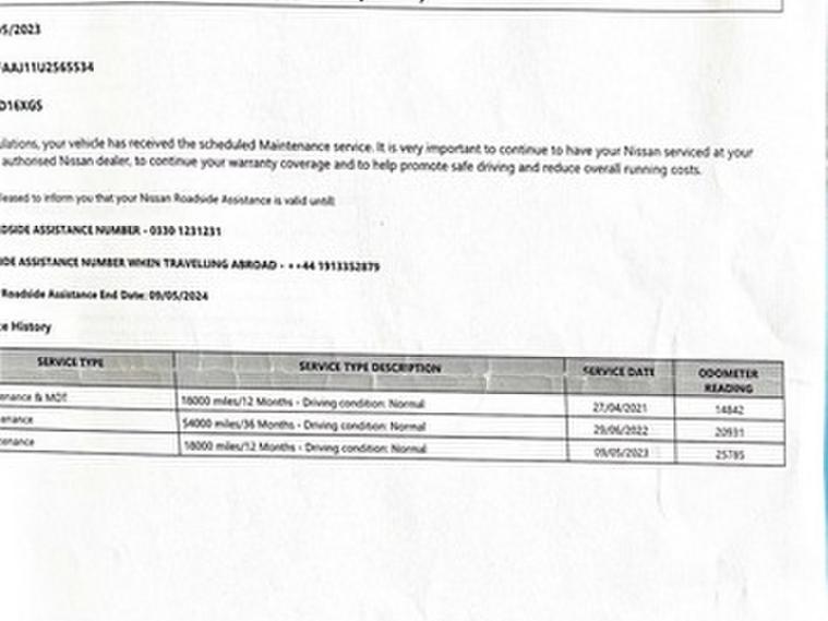 This car comes with 5 seats, Black, 3 owners, 18in Alloy Wheels, 3 Height Adjustable Rear Headrests, 6 Speakers, 60-40 Split Rear Folding Seats, AM-FM-CD Audio System with DAB, AUX Socket for MP3 Player, Advanced Drive Assist Display - 5in TFT Coloured Screen, Ambient Lighting Centre Console, Auto Wipers, Bluetooth with Audio Streaming, Body Coloured Door Mirrors, Body Coloured Handles, Boot Light, Centre Console Storage and Armrest, Chrome Glass Surround, Chrome Interior Door Handles, Cruise Control with Speed Limiter, Daytime Running Lights Dip Function When Turn Signal Applied, Driver Seat Height Adjustment, Driver-Passenger-Side and Curtain Airbags, Drivers Seat with Manual Lumbar Support, Dual Zone Climate Control Air Conditioning, ESP ABS EBD and Brake Assist, Electric Heated Auto-Folding Door Mirrors, Electric Parking Brake, Electric Speed-Sensitive Power Steering, Front 12v Power Sockets x2, Front Fog Lights, Front and Rear Door Pockets with Drink Holders, Front and Rear Electric Windows, Front and Rear Seat Belts with Load Limiter and Pretensioners, Front and Rear Seatbelt Warning, Glossy Black Dash Trim, Halogen Headlamps, Height Adjustable Front Head Restraints, Height Adjustable Front Seatbelts, Hill Start Assist, ISOFIX Child Seat Anchoring Points - Rear x2, Intelligent Around View Monitor, Intelligent Auto Headlight, Intelligent Park Assist, Interior Ambient Lighting, LED Daytime Running Lights, Leather D Shaped Steering Wheel, Leather Gear Lever, Leather Knee Pad, Luggage Board System, Matt Silver Roof Rails, Nissan Anti Theft System Immobiliser, Nissan Chassis Controls, Nissan Connect 7in Touchscreen Navigation and Entertainment System, Nissan Intelligent Key, One Touch 4 x Auto Windows with Illuminated Switches, Outside Temperature Sensor, Parcel Shelf - Stow Function Under Luggage Board, Passenger Airbag Deactivation System, Passengers Seat with Manual Lumbar Support, Pollen Filter, Puncture Repair Kit, Rear Door Child Locks, Rear Roof Spoiler, Rear USB Port, Rear View Camera, Rear Wiper with Reverse Link, Remote Audio Control, Remote Central Locking with Superlocking, Safety Shield Plus, Seats - Passengers Height Adjustment, Selectable Steering - Normal or Sport, Smart Vision Pack, Smartphone App Integration, Start Push Button, Steering Wheel Mounted Audio Controls, Synthetic Leather Wrapped Door Handle with Contrasting Stitching, TPMS - Tyre Pressure Monitoring System, Tech Pack, Thatcham Category 1 Alarm, Tilt and Telescopic Adjustable Steering Wheel, Trip Computer, USB Port, Underbody Vortex Generators,