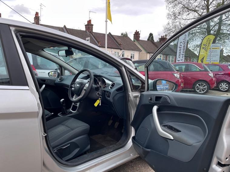 1.25 Ford Fiesta Zetec 5 Door in Moondust Silver Metallic, Only Two Owners From New and the 2nd Owner bought it when it was 9 Months Old. Super Low Miles at only 28, 950, Solid Service History and we have just carried Out Full Inspection Service Replacing the Cam-Belt, Water Pump, Aux Belt and Replacing all Four Tyres. Just Ariived awaiting valeting and will be re-pictured once completed. Nice Spec, Air-Conditioning, Quick-clear Heated Windscreen, Radio/CD With Aux input, Steering Wheel Audio Controls, Electric Front Windows, Electric Operated Door Mirrors, Remote Central Locking (Supplied with Two Keys), Power Steering, Height & Reach Adjustable Leather Bound Multi-Functional Steering Wheel, Height Adjustable Drivers Seat, Alloy Wheels, Spare Wheel.