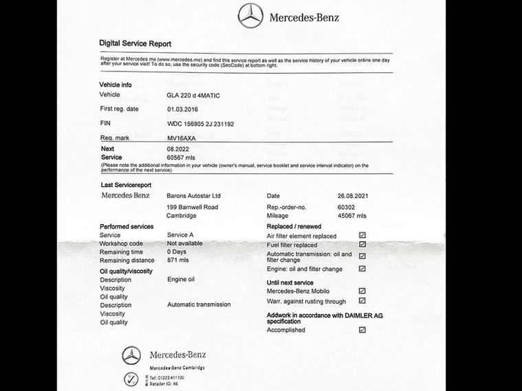 2016 Mercedes-Benz GLA 2.1 GLA220d AMG Line SUV 5dr Diesel 7G-DCT 4MATIC Euro 6 (s/s) (177 ps) +2keys +3keepers +Navigation +FSH