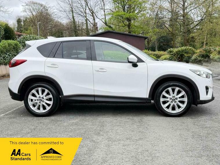 This 2012 Mazda CX-5 SKYACTIV-G Sport Nav presents a compelling proposition with its low mileage for its age, having covered just 90, 000 miles. This particular example boasts a clear vehicle history check and comes with 12 months MOT provided on purchase, alongside a 3 month warranty for your peace of mind. Its great service history includes a last service at 86, 968 miles. The CX-5 is equipped with a 2.0 litre petrol engine and features Bi-Xenon headlights, front parking sensors, Reverse Camera, Satellite Navigation and heated front seats. Inside, you'll find dual zone climate control and a premium BOSE sound system with a 6CD changer and nine speakers.