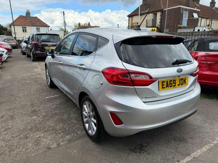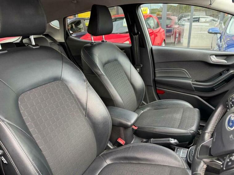 This 2019 Ford Fiesta T Titanium X offers a superb blend of comfort and convenience, making it an excellent choice for any driver. Powered by an efficient 1.0L Euro 6 petrol engine, this model boasts the desirable Titanium X trim. It comes equipped with the Comfort Pack, which includes heated seats and a heated steering wheel, ensuring a pleasant experience even on colder days. The Ford KeyFree System allows for effortless keyless entry, while the Electronic Automatic Temperature Control air conditioning provides a perfectly regulated cabin environment. Additionally, automatic on-off headlights add to the car's user friendly design.
