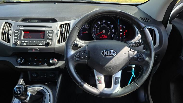 Silverstone Cars brings you this 2016 Kia Sportage GDi 1 is a fantastic example with a full service history, including its most recent service on 2026-04-18 at 66, 873 miles, which is notably low for its age. This Euro 6 compliant 1.6 litre petrol model offers a comfortable driving experience and comes equipped with essential features such as Bluetooth connectivity for both hands free calls and music streaming, as well as air conditioning to ensure a pleasant cabin environment.