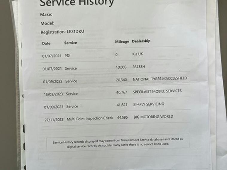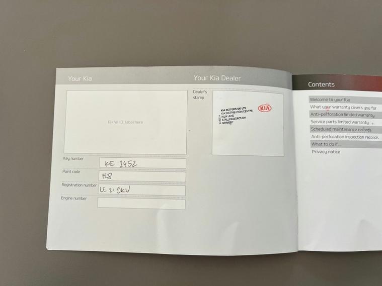This car comes with 5 seats, Grey, 2 owners, 12V Power Sockets - Front and Rear Consoles, 17in Alloy Wheels, 3 x Passenger Assist Grips, 3.5in Supervision Monochrome Cluster Display, 6-Speaker System, 60-40 Split Folding Rear Seats, 8in Touchscreen Satellite Navigation with European Mapping and Traffic Messaging Channel - TMC, Advanced Anti-Theft System including Immobiliser and Alarm, All-Round 3-Point Seatbelts, All-Round Electric Windows with Drivers Auto Up-Down Function, All-Round Height Adjustable Headrests, Android Auto with Voice Control, Anti-Lock Braking System - ABS with Electronic Brakeforce Distribution - EBD, Apple CarPlay with Voice Control, Auto Dimming Rear-View Mirror, Automatic Light Control, Bi-Function Halogen Headlights, Black Side Sill and Wheel Arch Body Mouldings, Bluetooth with Music Streaming, Body Coloured Door Mirrors, Body Coloured Exterior Door Handles with Chrome Insert, Centre Cabin Light, Centre Console Storage Box, Child Safety Rear Door Locks, Chrome Front Bumper Insert, Chrome Front Grille Surround, Chrome Window Surrounds, Coat Hooks - Rear, Cruise Control with Speed Limiter, Cupholders in Rear Armrest, DAB Radio with MP3 Compatibility, Door Deadlocks, Drive Mode Select, Driver Attention Warning - DAW, Driver and Passenger Sunvisors with Vanity Mirror and Illumination, Drivers Seat Manual Height Adjuster, Drivers Seat Power Lumbar Support, Drivers Wide View Door Mirror, Dual Automatic Air Conditioning, Electrically Folding-Adjustable and Heated Door Mirrors with LED Indicators, Electronic Parking Brake, Electronic Stability Control - ESC - with Downhill Brake Control - DBC, Emergency Stop Signalling - ESS, Front Cabin LED Map Light with Sunglasses Case, Front Door Courtesy Reflectors, Front Passenger Airbag Cut Off Switch, Front Seatback Pockets, Front Seatbelt Height Adjusters, Front and Rear Centre Armrests, Front and Rear Door Storage, Gear Shift Indicator, Glovebox with Illumination, Head Rests - Front Active, Headlights - High Beam Assist - HBA, Heated Front and Outer Rear Seats, High Gloss Black Diamond Mesh Radiator Grille, Hill-Start Assist Control - HAC, ISOFIX Child Seat Top Tethers and Anchor Fixings, Ignition Keyhole Illumination, Impact Sensing Auto Door Unlocking, Interior Door Lock-Unlock Function, Kia Connected Services Featuring TomTom - Traffic - Speed Cameras - Local Search and Weather Updates, LED Daytime Running Lights, Lane Keep Assist System - LKAS, Leather Trimmed Door Armrests, Leather Trimmed Gearshift, Light Grey Headlining, Locking Wheel Nuts, Luggage Area Light, Luggage Area Load Cover, Luggage Net Hooks, Metallic Finish Centre Fascia Trim, Privacy Glass - Rear Windows and Tailgate, Projection Front Fog Lights, Rain Sensing Front Wipers, Rear Parking Sensors, Rear Spoiler, Rear USB Charging Port, Rear Ventilation Duct, Remote Central Door Locking with Fold-Away Key, Reversing Camera System, Roof Rails, Satin Chrome Interior Door Handles, Shark Fin Antenna, Speed Limit Information Function - SLIF, Speed Sensing Auto Door Locking, Steering Wheel - Leather, Steering Wheel Mounted Audio Controls, TMK - Tyre Mobility Kit, TSA - Trailer Stability Assist, Telematics System with UVO Connect Services, Tilt and Telescopic Steering Wheel Adjustment, Tinted Glass, Trip Computer, Twin Curtain Airbags with Roll-Over Sensor, Twin Front Airbags, Twin Side Airbags - Front, Tyre Pressure Monitoring System - TPMS, USB Port for Connection of a Media Device, Visible Vehicle Identification Number - VIN, Welcome and Follow-Me-Home Light Functionality, Windscreen Washer Level Warning,
