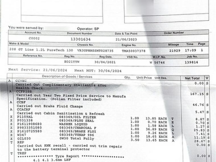 This car comes with 5 seats, Blue, 2 owners, 12V Power Socket, 17in Alloy Wheels - Camden - Diamond Cut Two-Tone, 6-Speaker Radio - MP3 Compatible, 8-Colour Customisable Ambient Lighting, ABS with Electronic Brake Force Distributor EBD and Emergency Brake Assist EBA, Active Safety Brake - Night Function - Cyclists - Pedestrians, Airbags - Adaptive Driver and Front Passenger, Airbags - Driver and Front Passenger Side, Alarm - Thatcham Category 1 Approved, Automatic Door Locking When Moving Off, Automatic Dual Zone Climate Control, Automatic Hazard Light Activation Upon Heavy Brake Application, Blind Spot Monitoring, Bluetooth Telephone Facility, Carpet Mats, Central Front Armrest with Storage Compartment, Child Locking Functionality on Rear Doors, DAB - Digital Audio Broadcasting, Dark Tinted Rear Side and Tailgate Windows, Dashboard - Front and Rear Door Panel Finish - Carbon Effect, Deadlocking, Diamond Black Roof, Door Mirror Shells - Nera Black, Driver Attention Warning, Driver and Front Passenger Seat Mechanical Height Adjustment, Driver and Front Passenger Sport Seats, ESP - Electronic Stability Programme with Hill Start Assist, Electric - Heated and Power Folding Door Mirrors, Electric Parking Brake, Electric Power Steering with Reach and Rake Adjustable Steering Column, Electronic Code Immobiliser, Exterior Door Handles - Body-Colour, Exterior Temperature Indicator with Ice Warning, Frameless Electrochrome Rear View Mirror, Front Optimised Safety Headrests and Rear Retractable Headrests - x3 - Height-Adjustable, Front Three-Point Retractable Seatbelts with Force Limiters, Front USB Socket x2 including x1 USB-C, Full LED Headlights with Smartbeam Assist, GT Model Designation Badging on Tailgate, Gear Lever - Full Grain Leather and Satin Chrome, Gloss Black B Pillar, Gloss Black Rear Cluster Connecting Strip, Gloss Black Wheel Arch Extensions, Gloss Black Window Surround, Headlights Left On Audible Warning, High Centre Console with 2 Cup Holders, ISOFIX Child Seat Fittings - x2 - Second Row, ISOFIX with Top Tether on Passenger Seat, LED Daytime Running Lights - 3-Claw Headlight with Distinctive Tooth Design, LED Front Interior Light with Reading Spotlights -x2- and Rear Interior Light with Timer, LED Side Indicator Lights Integrated into Door Mirrors, Lane Keeping Assist, Lime Green Contrast Stitching to Armrest - Front Centre Console - Door Panels - Dashboard Fascia, Map Pockets on Front Seat Backs, Mirror Screen - Apple CarPlay and Android Auto, Mistral Full-Grain Perforated Leather Steering Wheel with Aikinite Stitch Detail and Satin Chrome GT Emblem, Model Designation Badges - Front and Rear, Multifunction Trip Computer, One-Touch Electric Front Windows with Pinch Protection, One-Touch Electric Rear Windows with Pinch Protection, PEUGEOT 3D i-Cockpit - Configurable 3D Head-Up Instrument Panel, PEUGEOT Scuff Plates, PEUGEOT i-Cockpit 10in Capacitive Colour Touchscreen with Connected 3D Navigation includes TomTom Live Updates (3 Year Subscription From New), PEUGEOT i-Cockpit Compact Steering Wheel, Peugeot Connect SOS and Assistance, Piano Keys - Gloss Black Plated Toggle Switches to Access Main Functions of Vehicle, Programmable Cruise Control and Speed Limiter, Puncture Kit, Push Button Start, Radiator Grille - Dark Chrome Chequered and Gloss Black Edge Trim, Rear Bumper - Gloss Black Finish, Rear Full LED 3D Peugeot Signature Claw Effect Lights with Daylight Function, Rear Lower Bumper Gloss Black Diffuser Effect Trim, Rear Number Plate Lights x2, Rear Reversing Lights, Rear USB Socket x2, Rear Windscreen Wiper Triggered Automatically in Reverse Gear, Roof Lining - Mistral Black, Seatbelt Unfastened on the Move Audible and Visual Alert for Front and Rear Seats, Seating - Driver and Front Passenger Seat Manual Adjustment - Longitudinal and Back Rest Angle, Seating- 1-3 - 2-3 Folding Rear Seat, Smartphone Docking Station, Speed Limit Recognition and Recommendation, Tailgate with Heated Rear Windscreen and Wiper Blade, TomTom Live Services (3 Year Subscription from New), Tyre Pressure Sensors, Visibility Pack, Visio Park 1 - 180 Degree Colour Reversing Camera, Voice Recognition - Radio-Navigation-Telephony Features,