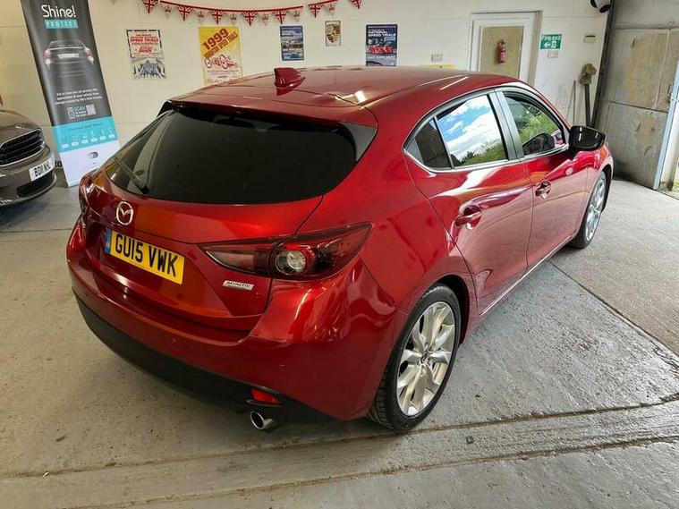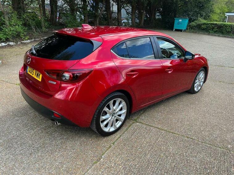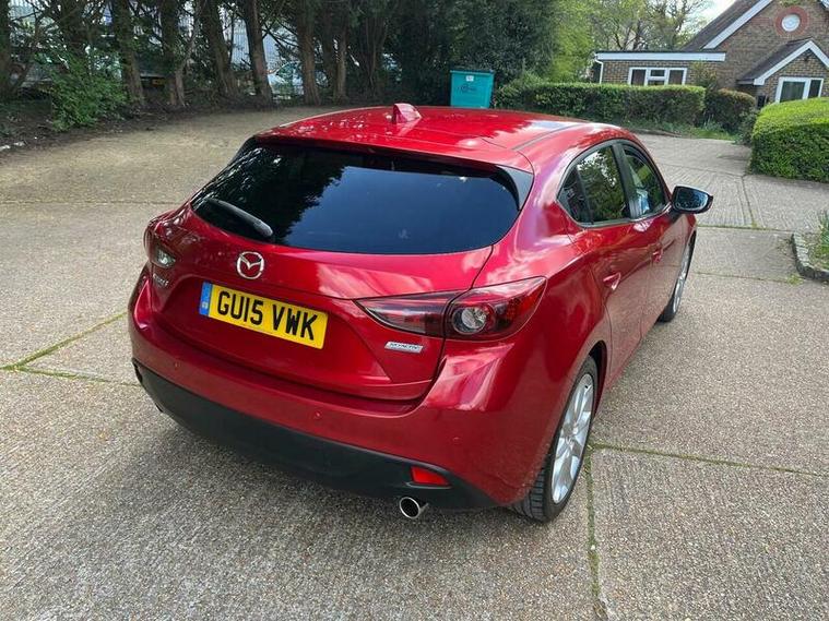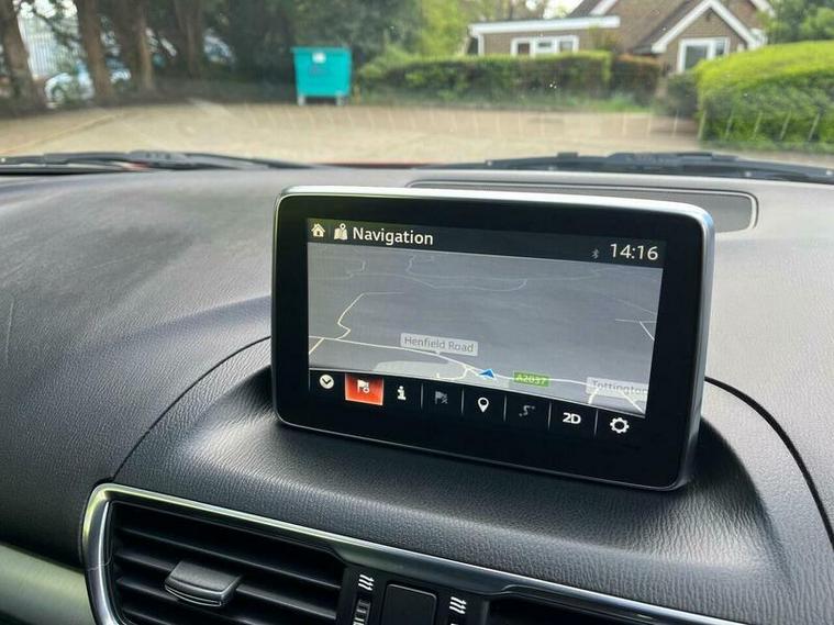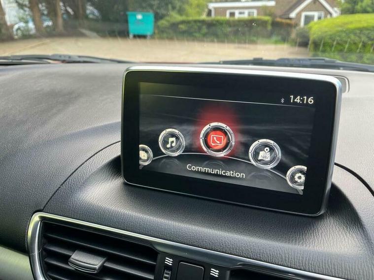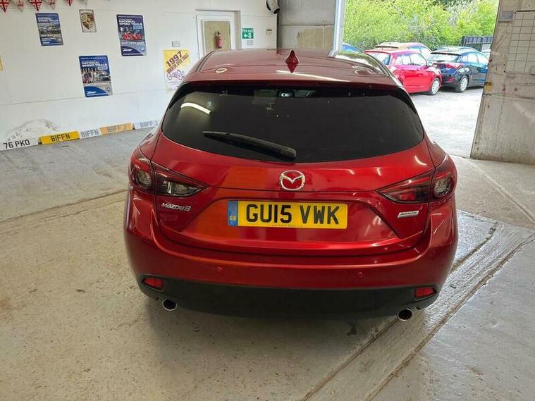 This 2015 Mazda3 SKYACTIV G Sport Nav is a great choice for those seeking a well equipped and enjoyable driving experience. This particular model, registered in 2015, features the Sport Nav trim and is powered by a responsive 2.0 litre petrol engine. It comes with Bi-Xenon headlights that automatically activate when dusk falls, and for your convenience, it offers smart keyless entry. Inside, you'll find a premium BOSE Centrepoint Surround System with nine speakers, ensuring an immersive audio experience. Parking is made easier with front parking sensors.