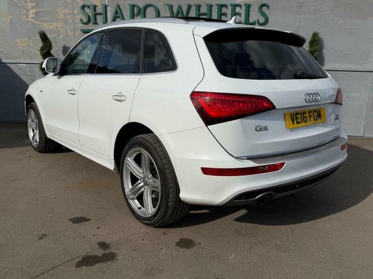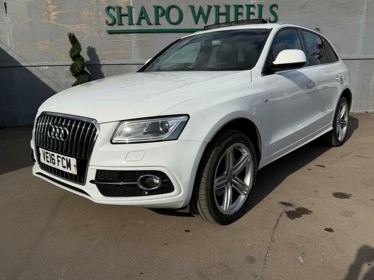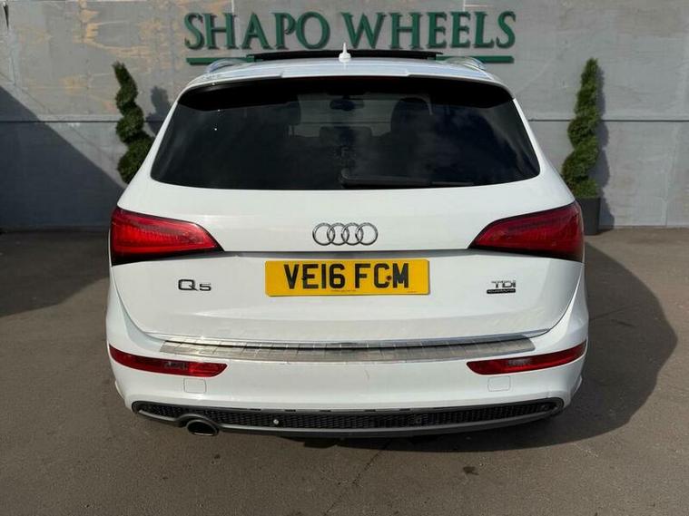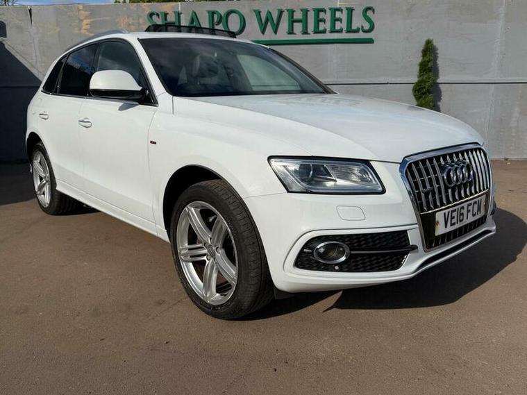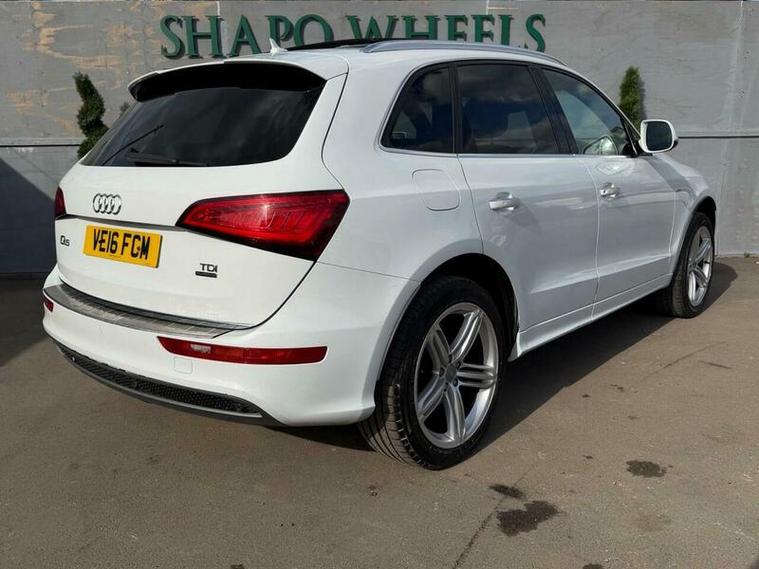 Shapo Wheels Limited presents the Audi Q5 2.0 TDI S line Plus S Tronic quattro Euro 6 (s/s) 5dr + AUTOMATIC + DIESEL + 5 DOOR + HPI CLEAR + PART SERVICE HISTORY + SERVICES AVAILABLE FOR (2016, 2018, 2021, 2022, 2023, 2024 and 2025 + FRESH MOT + SUNROOF + NAV + BLUETOOTH + FRONT AND REAR PARKING SENSORS + HEATED LEATHER SEATS + AUTO LIGHTS + CRUISE CONTROL + ULEZ COMPLIANT + SPARE KEY PRESENT.