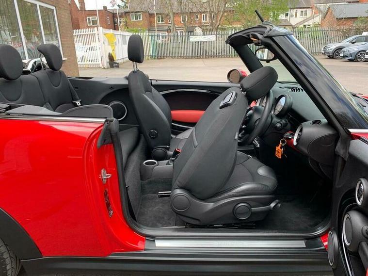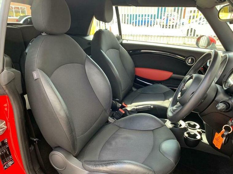 Here is our outstanding condition 2014 MINI Convertible Cooper. It boasts exceptionally low mileage for its age, having covered just 41121 miles. This stylish convertible is powered by a 1.6L petrol engine and meets Euro 6 ULEZ standards. It comes equipped a 3-spoke sport leather steering wheel with multifunction controls, and the CHILI Pack. The eye catching Rooster Red adds a distinctive touch to the interior and looks great on the exterior.
