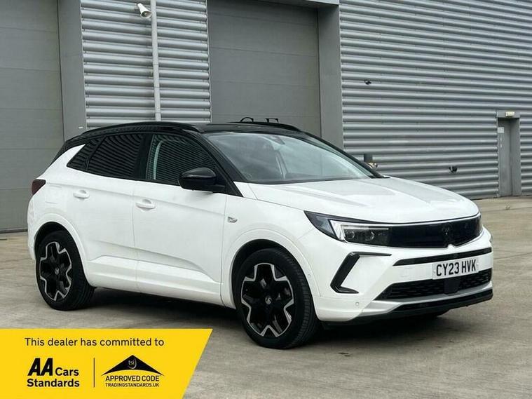 HPI clear, 12 months AA breakdown cover, 6 months warty, full service history, finance available, This 2023 Vauxhall Grandland Turbo Ultimate boasts a full service history with its last service completed on 21st April 2026, and it comes with a clear vehicle history check. This Euro 6 compliant 1.2L petrol model has had only one owner and is supplied with a 6 month warranty and 12 months MOT. It features Automatic Lighting Control, Side Blind Spot Alert, and a 360 Degree Panoramic Parking Camera for enhanced visibility and safety. The Winter Pack ensures comfort with heated seats and a heated steering wheel, complemented by AGR Approved Ergonomic Active Sports Front Seats., The Grandland Turbo Ultimate offers a low insurance group, making it an economical choice. You'll also appreciate the generous boot space, perfect for luggage or shopping. These highlights demonstrate how this Grandland is a well maintained and practical option for your motoring needs., 6 months warranty, 12 months MOT, Last serviced on 21/04/2026, Full service history, Excellent bodywork, Interior - Excellent Condition, Tyre condition Excellent, 5 seats, White, 1 owner, 12V Electrical Accessory Socket, 12in Digital Instrument Cluster, 19in Alloy Wheels - Diamond Cut - Multi-Spoke - Bi-Colour, 230V Electrical Accessory Socket in the Rear, 360 Degree Panoramic Parking Camera, 60-40 Split-Folding Rear Seat Back, ABS - Anti-Lock Braking System, Adaptive IntelliLux LED Pixel Headlights, Advanced Park Assist, Advanced Predictive Logic Control System, Airbags - Front Seat Side-Impact, Alloy Sports Pedals, Ambient Lighting Centre Console Downlighter, Ambient Lighting in Front Doors, Automatic Air Direction and Fan Speed, Automatic City Emergency Braking, Automatic Lighting Control, Automatically Dimming Anti-Dazzle Rear-View Mirror, Black Door Panels with Black Premium Leather-Effect Inserts, Black Side Window Trim, Body Coloured Door Handles, Body-Colour Lower Front and Rear Bumper, Body-Colour Upper Front Bumper, CSC - Corner Stability Control, Centre Rear Armrest with Load-Through Facility, Charcoal