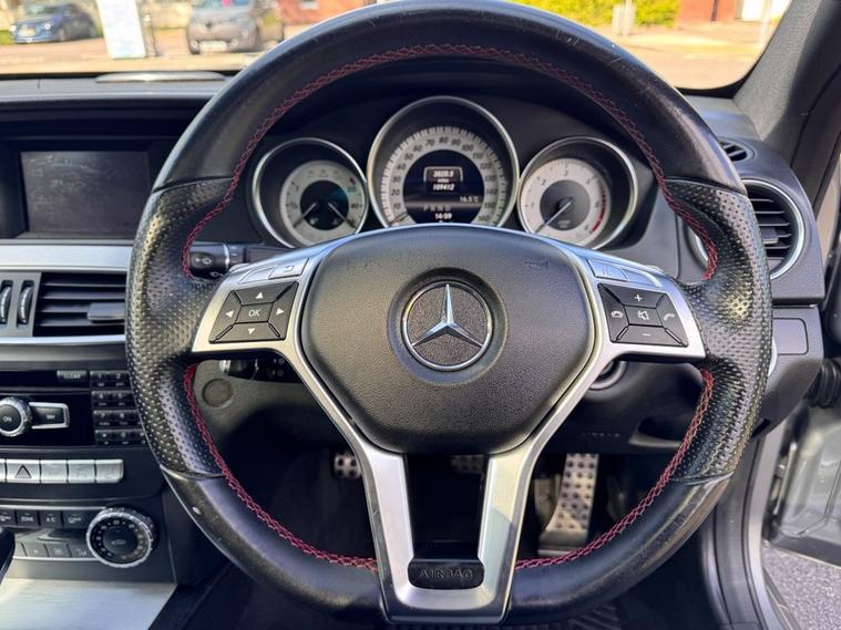 Mercedes-Benz C220 AMG Sports Plus B/E, 2.1L diesel engine, automatic gearbox, covered 110, 000 miles with service history, factory fitted Mercedes alarm and immobiliser, 18? alloy wheels, MOT until November, privacy glass, pan roof, satnav, sports half leather interior with red stitching, heated seats, auto wipers, central locking, parking sensors, electric windows, electric mirrors, cruise control with speed limiter, quick clear front and rear screen, heated side mirrors, audio remote, bluetooth interface for hands-free telephony, AUX input, LED rear lights, power steering, air conditioning, traction control, anti-lock brakes, front and side safety air bags, full dealer facilities, low rate finance available, warranty included, card payments accepted, part exchange welcome, all vehicles HPI checked, viewing by appointment only