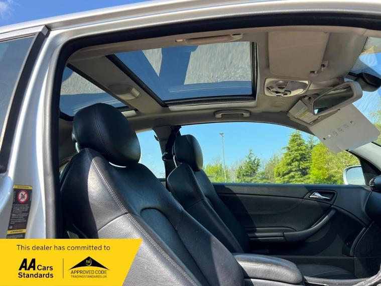 HERE FOR SALE WE HAVE THE EVER POPULAR MERCEDES C230 COUPE PETROL AUTOMATIC, FINISHED IN METALLIC SILVER WITH BLACK LEATHER INTERIOR, LOW MILEAGE CAR, DRIVES WELL. THIS VEHICLE COMES WITH PANORAMIC ROOF, LEATHER INTERIOR, AUTO LIGHTS, AFTERMARKET BLUETOOTH AUDIO STEREO, ALLOY WHEELS, AUTO LIGHTS, 4 VERY GOOD TYRES, LONG MOT, CAN BE DRIVEN IN AND AROUND THE UK WITH NO FURTHER CHARGES, PART EXCHANGE TO CLEAR, PLEASE CALL ONE OF OUR SALES TEAM FOR MORE INFORAMTION OR TO ARRANGE A TEST DRIVE