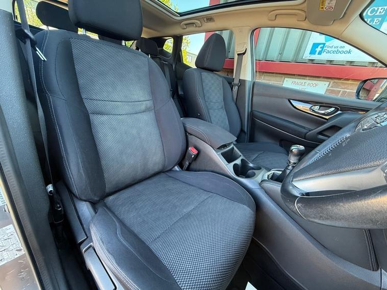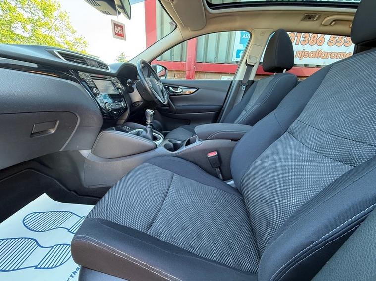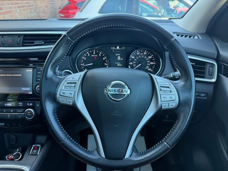 This 2015 Nissan Qashqai DIG T n-tec+ boasts an exceptionally low mileage for its age, it comes with 2 keys, a full service history, a clear vehicle history check, and an MOT valid 2027, offering peace of mind. The 1.6 litre petrol engine is Euro 6 compliant, contributing to its low CO2 emissions. This n-tec+ model is equipped with a range of useful features including front and rear park sensors, an Around View Monitor with a 360 degree camera, glass panoramic roof, satelitte navigation, dual zone climate control, bluetooth integration, rear privacy glass, and an intelligent key for keyless entry.