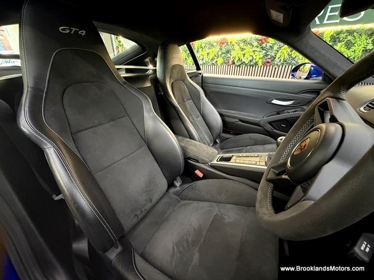 Porsche 718 Cayman 4.0 GT4 Euro 6 (s/s) 2dr, This GT4 is equipped with Low Miles, Sat Nav, Bose Speakers, ABS, Air Conditioning, Alloy Wheels, Central Locking, Electric Windows, Power Assisted Steering, Adjustable Steering, Airbags, Speakers, Steering Wheel Controls, Traction Control. Buying from Brooklands Motor Centres means that you can buy with confidence, this vehicle comes to you with a Warranty, 72 Point Pre Delivery Inspection, all of which is FREE of charge, All our cars are HPI Clear, full valet, friendly staff, debit/credit cards taken, FINANCE AVAILABLE, generous part exchange deals, £199 administration fee applies to all transactions. Call us now on our 24hr sales lines 01138032936, SatNav LS12 2TY, dealer's website Facebook: BrooklandsHQ, Instagram: BrooklandsHQ TikTok: BrooklandsHQ