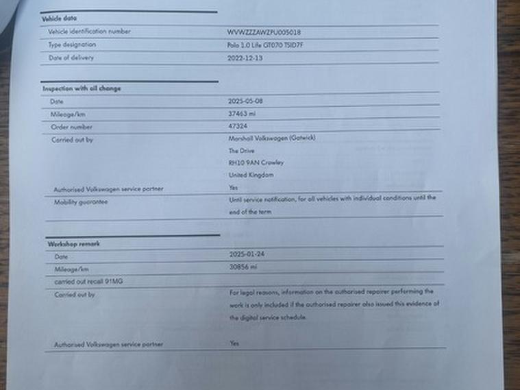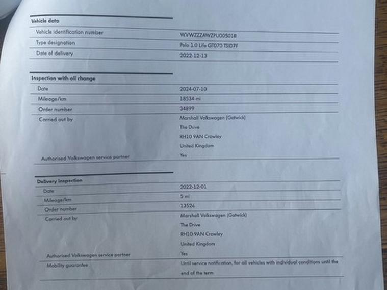 2022 Volkswagen Polo 1.0 TSI Life Hatchback 5dr Petrol DSG Euro 6 (s/s) (95 ps) +2keys +1keeper +FSH +Low Miles