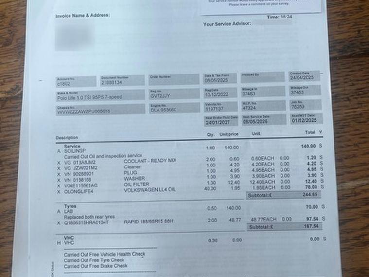 This car comes with 5 seats, Black, 1 owner, 12V Socket - Centre Console, 15in Alloy Wheels - Essex, 2 USB-C Ports in the Front and 2 USB-C Charging Socket on the Centre Console in the Rear, 3-Point Seatbelts in Front with Seatbelt Pretensioners, ABS - Anti-Lock Braking System with HBA - Hydraulic Brake Assist, Adaptive Cruise Control, Airbags - Front Seat Side Impact, Anti-Theft Alarm System with Interior Monitoring - Backup Horn and Towing Protection, Anti-Theft Wheel Bolts, Armrest - Front Centre, Automatic Dimming Interior Rear View Mirror, Automatic Headlight Control with LED Separate Daytime Running Lights and Coming Home-Leaving Home Feature, Automatic Post-Collision Braking System, Bluetooth Mobile Phone Interface, Body Coloured - Door Mirrors and Door Handles, Body Coloured Bumpers, Chrome Plated Radiator Grille Inserts - Air Vent Surrounds and Light Switch Surrounds, Curtain and Side Airbags in Front with Centre Airbag, Decorative Inserts in Dash and Doors Panels - Lava Stone Black Gloss-Matt, Digital Cockpit - Basic - 8in Display, Diversity Antenna for FM Reception, Door Mirrors - Power Folding - Adjustable and Heated - with Front Passenger Exterior Mirror Lowering Function, Door and Side Trim Panel, Driver Alert System, Driver and Front Passenger Seat Height Adjustment, Drivers and Front Passengers Airbags with Front Passenger Airbag Deactivation Switch, Drivers and Front Passengers Safety Optimised Head Restraints, Drivers and Front Passengers Sun Visors with Illuminated Vanity Mirrors, Dust and Pollen Filter, ESC - Electronic Stability Control, Electric Windows - Front and Rear, Electromechanical Speed Sensitive Power Steering, Electronic Engine Immobiliser, Extended and Predictive Pedestrian-Cyclist Protection, Front Assist - Radar Sensor Controlled Distance Monitoring System - City Emergency Braking System and Predictive Pedestrian Protection, Front Seat Back Storage Pockets, Gear Knob - Leather, Handbrake Lever Handle in Leather, Headlight Range Control, Headliner - Ceramique, Heat Insulating Glass In Side and Rear Windows, Heat Insulating Glass Windscreen, Hill Hold Control, ISOFIX Child Seat Preparation, LED Headlights, LED Rear Combination Lamps, Leather-Wrapped Multi-Function Steering Wheel with Paddle Shift, Light and Sight Pack, Light and Vision Pack, Luggage Compartment Cover, Luggage Compartment Floor, Luggage Compartment Light, Manually Controlled Air Conditioning System, Multifunction Camera, Pedal Cluster - Standard, Preparation for We Connect and We Connect Plus, Radio, Rain Sensor, Reading Lights - Front x2 and Rear x2, Ready 2 Discover Infotainment System, Rear Fog Light, Rear Seat Bench Not Split - Backrest Split Folding 60-40, Rear Shock Absorbers, Rear Three-Point Seatbelts x3, Rear Windscreen Washer and Wiper with Interval Delay, Remote Central Locking with 2 Remote Folding Keys, Single Tone Horn, Speedo and Rev Counter - Electronic Odometer - Trip - Service Interval Display - Exterior Temperature Gauge, Standard Rear Axle, Standard Seats in Front, Three Rear Head Restraints, Travel Assist, Travel Assist including Emergency Assist, Tyre Mobility Kit and Compressor, Tyre Pressure Loss Indicator, Warning Buzzer and Light for Front and Rear Seat Belts if Unfastened, Washer Fluid Level Indicator, Wireless App Connect, eCall - Emergency Call Service,