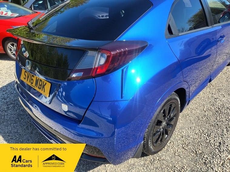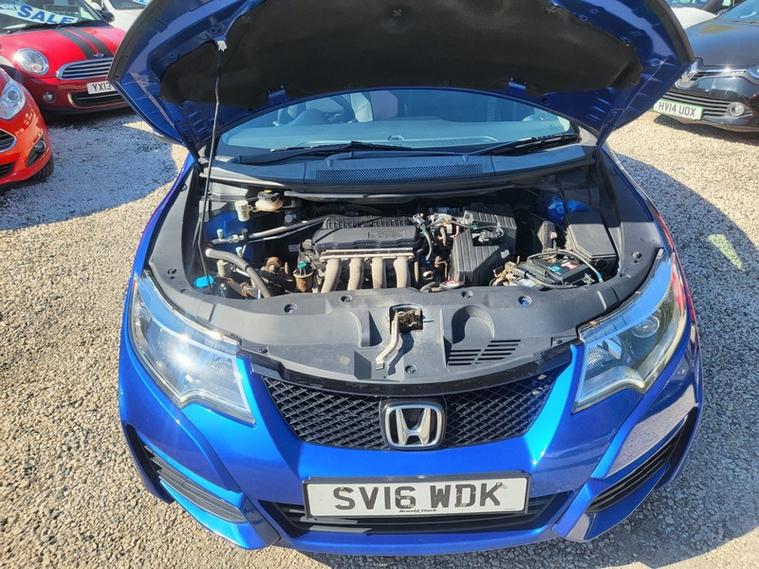 The 2016 Honda Civic i-VTEC S is a reliable and well-built family hatchback that combines Honda?s renowned durability with strong practicality and efficient petrol performance. Powered by a 1.4-litre i-VTEC petrol engine (1339cc), producing around 99?100 bhp and approximately 127 Nm of torque, it delivers smooth and dependable performance suited to everyday driving. Paired with a 6-speed manual gearbox, the Civic offers a refined and easy driving experience, with fuel economy of around 50?52 mpg combined, helping to keep running costs low.The Civic stands out with its sharp and futuristic design, featuring angular styling, LED daytime running lights and a distinctive rear light bar, giving it a modern and sporty appearance. Its aerodynamic shape and bold lines help it stand out from more conventional hatchbacks, while still maintaining everyday usability.Inside, the cabin is well designed with a driver-focused layout and high-quality materials. The S trim offers a solid level of standard equipment, typically including air conditioning, cruise control with speed limiter, electric windows and mirrors, multifunction steering wheel controls and a central infotainment display with Bluetooth and media connectivity. The dashboard features Honda?s unique dual-layer instrument display, giving it a modern and distinctive feel.Practicality is one of the Civic?s biggest strengths. It offers seating for five passengers and a large boot capacity of around 470?477 litres, expanding to over 1, 300 litres with the rear seats folded, making it one of the most spacious cars in its class. The clever ?Magic Seat? system allows the rear seats to fold in multiple ways, enhancing versatility for carrying larger items.On the road, the 1.4 i-VTEC engine provides a smooth and reliable driving experience, with 0?62 mph taking around 13 seconds and a top speed of approximately 116 mph, offering a balance of efficiency and usability rather than outright performance. The Civic is known for its comfortable ride, stable handling and excellent build quality, making it a dependable choice for both short trips and longer journeys.Safety is well covered, with features including multiple airbags, ABS with electronic brake-force distribution, traction control, electronic stability control and ISOFIX child-seat mounting points, providing reassurance for driver and passengers alike.Overall, the 2016 Honda Civic i-VTEC S is a practical, efficient and dependable hatchback that offers strong reliability, excellent interior space and low running costs. With its solid build quality, comfortable driving experience and reputation for longevity, it remains an excellent choice for families and everyday drivers alike. The Honda Civic I-Vtec S will come with Bookpack, Part service history, 12 months MOT, 3 months warranty and 12 months breakdown cover. The Honda Civic I-Vtec S has a great spec that includes LED daytime running lights, , ABS brakes, Air conditioning, Alloy wheels, Central locking, Climate control, Electric windows, Power assisted steering, Adjustable steering, Bluetooth, Brake assist, Cruise control, Cup holders, Daytime running lights, Electric mirrors, ESP, Folding rear seats, Front and side impact airbags, Front fog lights, Heated door mirrors, Hill start assist, ISOFix anchor points, Lane assist, Parking sensors, Rain sensor, Start stop system, Steering wheel controls, Traction control and much more. For further information please see the spec list.