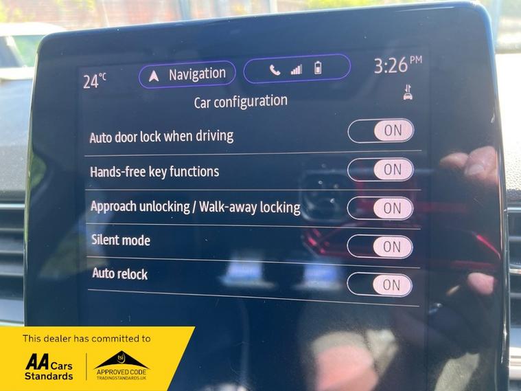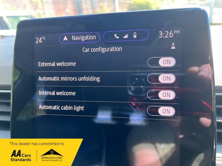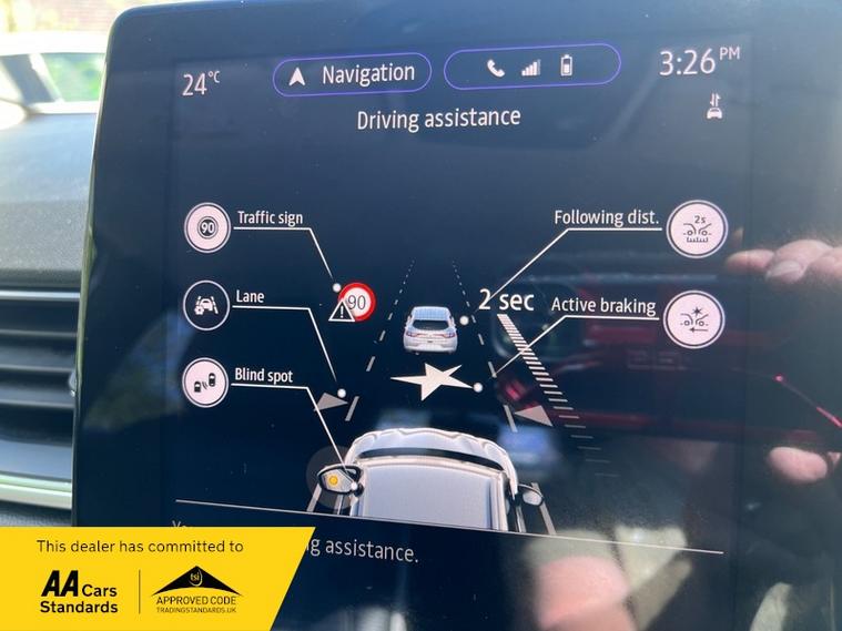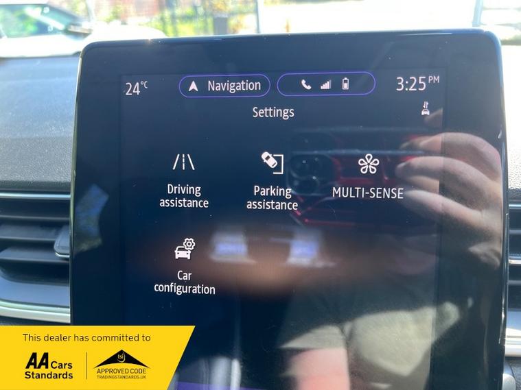 ONLY 1 PREVIOUS OWNER WITH FSH. GREAT SPECIFICATION - ANDROID AUTO AND APPLE CAR PLAY. REVERSING CAMERA. UPGRADED 10' SCREEN OPTION. PARTIAL LEATHER INTERIOR. TOUCHSCREEN MEDIA CENTRE WITH SATNAV, BLUETOOTH PHONE PREPARATION, DAB SOUND, USB CONNECTIONS. . CLIMATE CONTROL. ADAPTIVE CRUISE CONTROL. FRONT AND REAR PARKING SENSORS. ISOFIX CHILD SEAT FASTENINGS. KEYLESS ENTRY AND START. LANE DEPARTURE WARNING SYSTEM. ACTIVE BRAKING. BLINDSPOT WARNING SYSTEM. TRAFFIC SIGN RECOGNITION. PRIVACY GLASS. AUTO LED LIGHTS. AUTO WIPERS. RENAULT 'MULTISENSE' - DRIVING MOODS AND INTERIOR AMBIENT LIGHTING. FULL ELECTRIC PACK INC FOLDAWAY WING MIRRORS. 17' BAHAMAS DIAMOND CUT ALLOY WHEELS. ADJUSTABLE FRONT ARMREST. SPARE KEYSET PRESENT. AA APPROVED DEALER. 12 MONTH AA FREE BREAKDOWN COVER. DRIVE AWAY INSURANCE (SUBJECT TO STATUS AT COST). FINANCE OPTIONS AVAILABLE. OPEN 6 DAYS AND SUNDAYS BY APPOINTMENT. 01925372539 OPEN 6 DAYS AS WELL AS SUNDAYS AND EVENINGS BY PRIOR APPOINTMENT. PLEASE PHONE FOR FURTHER DETAILS. FINANCE AVAILABLE AT COMPETITIVE RATES, WARRANTY AVAILABLE ON ALL VEHICLES, OPEN 6 DAYS.
