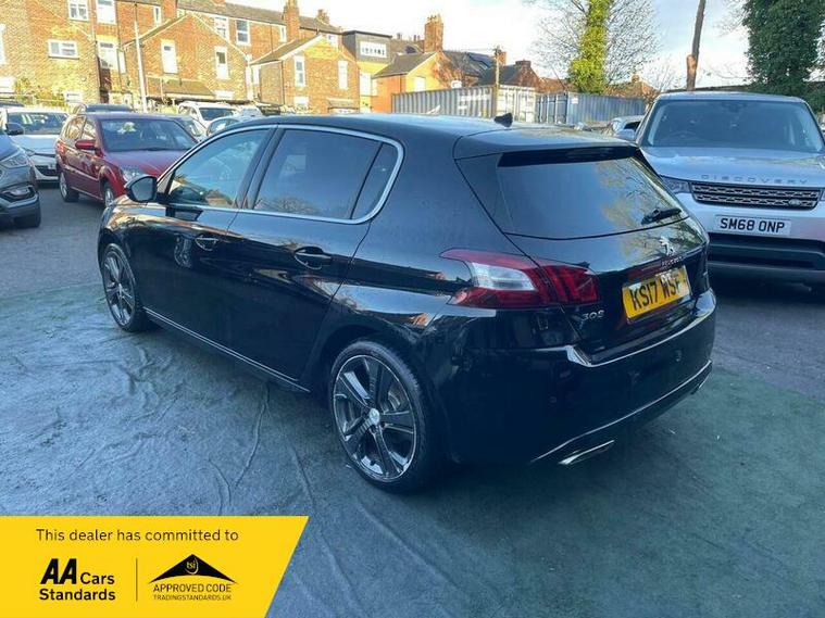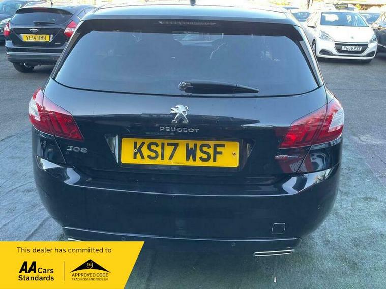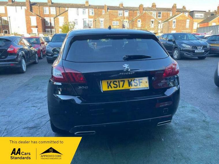 This 2017 Peugeot 308 GT Line offers an impressive fuel economy of 61 mpg, making it a highly efficient choice. This particular model is equipped with a 1.2 litre petrol engine and meets Euro 6 emission standards. Notable features include a Bluetooth telephone facility, rear parking aid with sensors and a reversing camera, automatic dual zone climate control, and LED headlights.