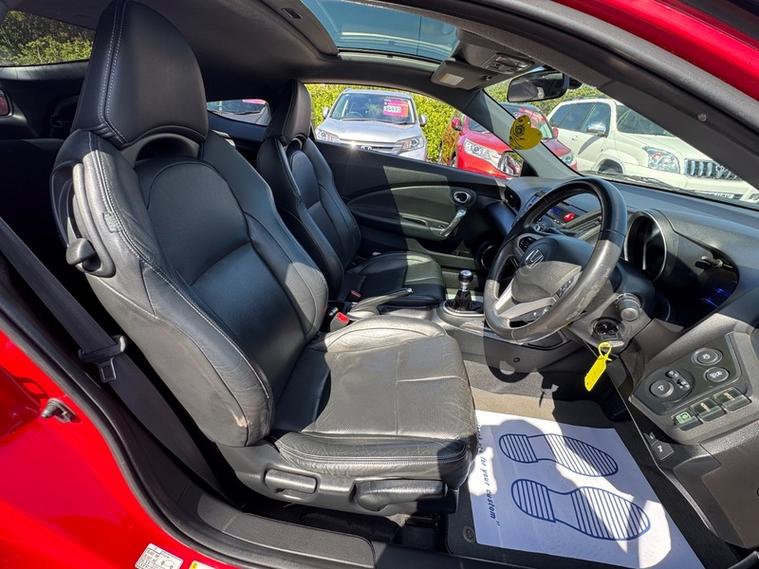 2012 (62) Honda CR-Z 1.5 IMA 137 GT Hybrid 3dr in Milano Red. Runs and Drives brilliantly without fault. Iconic Honda reliability, the CR-Zs can easily surpass 250, 000+ miles with basic maintenance. Simple IMA hybrid system and is a mild hybrid (battery and engine are not interlinked and the engine could run and operate even if the hybrid system failed). Rare ZF2 (2013-2016) facelift model which included a more powerful Lithium-ion hybrid battery providing better performance and economy compared to the NiMH hybrid battery used on the 2010-2012 models. This is the top spec GT model which includes Black leather heated seats, Glass roof, Cruise control, Bluetooth connectivity, Automatic lights/wipers, 17 inch alloy wheels, Rear parking sensors, Digital climate control (working air conditioning), Sport/Normal/Eco/Sport+ modes and more. April 2027 MOT (no advisory items), fresh service and 6 months warranty with the sale. Perfect for someone wanting a stylish hatchback with bulletproof Honda reliability as well as something a little different and quirky. If you are unsure about anything on this vehicle then please feel free to enquire further, we have sold over 30 CR-Zs over the years and have a high understanding of these vehicles. ULEZ compliant. A really nice example of the very rare ZF2 Honda CR-Z GT specification.
