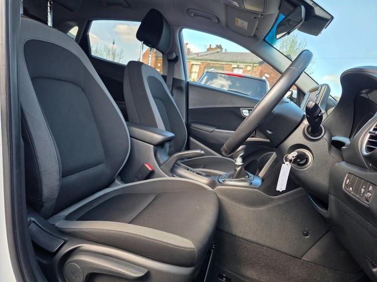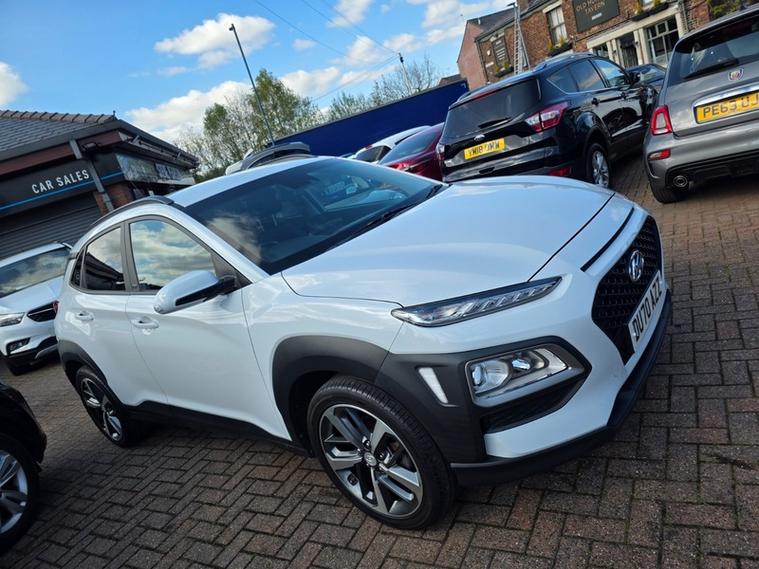 Steve Pearson Car Sales are Pleased to Present this Low Miles Hyundai Kona 1.0 T-GDI Play 5 Door in White. Only One Former Keeper with Full Service History. All usual Hyundai refinements include... ABS, Air conditioning, diamond cut alloy wheels, central locking, electric windows/mirrors, power steering, adjustable steering, 12v power socket, USB/AUX input, Bluetooth, Apple/Android car play, brake assist, cruise control, cup holders, daytime runnng lights, engine immobiliser, front airbags, front fog lights, heated door mirrors, heated rear windshield, hill start assist, ISOFix anchor point, MP3, DAB radio, touch screen media system, automatic headlights, reverse camera, side impact airbags, speakers, steering wheel controls, traction control etc......Looks and Drives Superb.. Car comes with 2 keys, professionally valeted and fully HPI checked. We welcome Part Exchange and can offer Great Finance Deals, Please take a look at our TESTIMONIALS On our Website and Buy In confidence from a long Established Family Firm at dealer's website where we have over 60 cars in stock, for more information please telephone or pop in for a cup of tea! Our showroom and floodlit forecourt are open 7 days a week, , Tameside's Finest Collection of Low Mileage Quality Cars