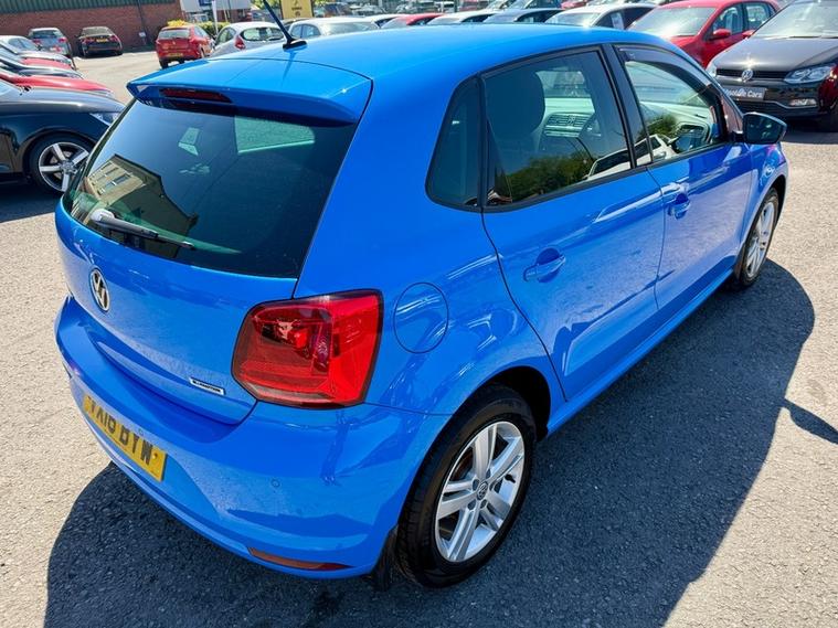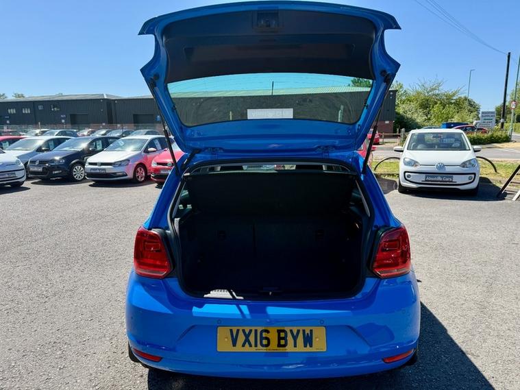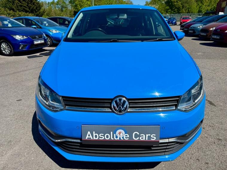 ABSOLUTE CARS have this 5 Door Volkswagen Polo 1.0 BlueMotion Tech Match Euro 6 (s/s) in Solid Blue with Alloys. *CAMBELT REPLACED 11/06/2024 at 69, 600 Miles* Call in for a test drive, finance arranged & part exchange considered., 3 months warranty, Next MOT due 02/03/2027, Last serviced on 24/04/2026 at 80, 810 miles, Full service history, Grey Cloth interior, 5 seats, Blue, 2 owners, 12V Socket - Centre Console, 15in Alloy Wheels - Stratford, ABS - Anti-Lock Braking System, ASR - Anti Slip Regulation, Air Conditioning - Manual, Air Vent Surrounds - Matt Chrome, Airbags - Driver, Airbags - Front Passenger, Airbags - Front Side Head, Airbags - Front Thorax, Alarm with Interior Protection, Anti-Theft Wheel Bolts, Automatic Post-Collision Braking System, Aux-In Socket, Bluetooth Audio Connection, Bluetooth Phone Connectivity, Body Coloured Bumpers, Body Coloured Door Handles, Body Coloured Side Sills, Body-Coloured Door Mirrors with Integrated Indicators, Car Information Display, Carpet - Black, Central Locking - Remote with 2 Remote Keys, Chrome Trimmed Front Air Intake Grille Surround, Colour Touch Screen - 6.5in, Composition Media System, Cruise Control, Cruise and Park Pack, Cup Holders - Front x2, DAB+ - Digital Radio Reception, Dashboard - Titan Black, Daytime Running Lights, Differential Lock - Electronic, Door Mirrors - Electrically Adjustable and Heated, Driver Alert System, Dust and Pollen Filter, ESC - Electronic Stability Control, Electric Windows - Front and Rear, Electronic Engine Immobiliser, Front Fog Lights with Cornering Lights, Front Seat Back Storage Pockets, Front Windscreen Washers and Wipers with 4 Speeds including Interval Delay, Galvanised Body, Gear Knob - Leather, Gear Lever Gaiter Surround - Matt Chrome, Glovebox, Grab Handles - Front x2 Rear x2 with Coat Hooks, HBA - Hydraulic Brake Assist, Handbrake Grip Button - Matt Chrome, Head Restraints - Front Whiplash Optimised, Headlights - Halogen Clear - Range Adjustable, Heated Rear Windscreen, Height and Reach Adjustable Steering Wheel, High Gloss Black Decorative Inserts, High Level 3rd Brake Light, Hill Hold Assist, ISOFIX Child Seat Preparation for 2 Rear Seats, Instrument Lighting - White Adjustable Panel Illumination, Interior Lighting Delay, Keys - Two Remote Control Folding Keys, Leather Trimmed Handbrake Grip, Lights on Warning Buzzer, Load Sill Protector, Luggage Compartment - Hooks x2, Luggage Compartment - Variable Load Floor, Luggage Compartment Cover - Removable, Luggage Compartment Light, MDI - Multi Device Interface, MP3 Compatible CD Player, Matt Chrome - Internal Door Handles, Multi-function Display, Multifunction Computer, Parking Sensors - Front, Parking Sensors - Rear, Power Assisted Steering - Speed Sensitive, Radiator Grille - Black with Chrome Louvres, Reading Lights - Front x2, Reading Lights - Rear, SD Card Reader, SMS Functionality - Read - Compose and Send SMS Messages Using Touch Screen Display - Android Compatible Smartphones Only, Seats - Front Comfort, Seats - Height Adjustment - Front, Simultaneous Pairing of 2 Compatible Mobile Devices, Sound Output - 4x20 Watt, Spare Wheel - 15in Steel, Speakers x8, Split Folding Rear Backrests 60-40, Steering Wheel - 3-Spoke - Leather Trimmed, Steering Wheel - Multifunction, Storage Compartment in Centre Console, Storage Compartment in Front Doors, Storage Compartment in Rear Doors, Sun Visors - Vanity Mirrors and Illuminated x2, Sunglasses Holder, Think Blue - Trainer - Driver Tips - Journey Analysis, Three Rear Head Restraints, Tinted Glass - Heat Insulating Rear 65 Percent Light Absorbing from B Pillar Backwards, Title and Cover Art Display, Tyre Pressure Loss Indicator, USB Socket, Warning Buzzer and Light for Front Seat Belts if Unfastened, AS WE ARE AN AA CARS DEALER THIS VEHICLE COMES WITH 12 MONTHS AA BREAKDOWN COVER.