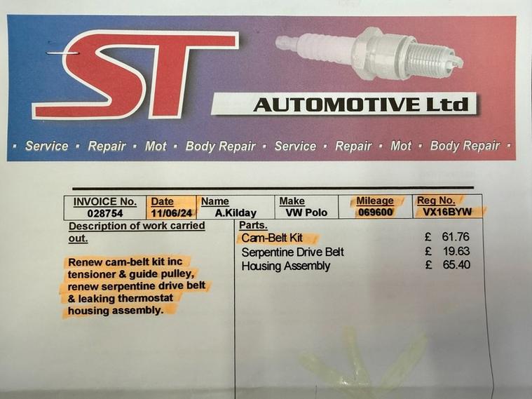 £20 TAX+B/TOOTH+P/SENS+CAMBELT