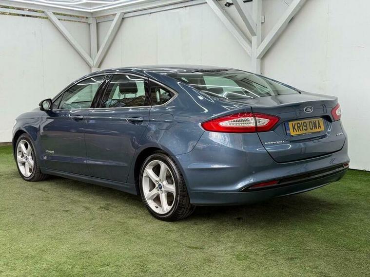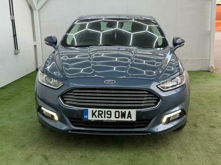 This 2019 Ford Mondeo Titanium Edition is a one-owner car with a clear history, powered by a 2.0L petrol hybrid engine (Euro 6). It comes with 12 months MOT and a 3-month warranty. Key features include 17' alloys, front heated Seats, dual-zone climate control, keyless entry, Stop/Start, 10-way electric seats with driver memory, and SYNC 3 touchscreen Navigation with Bluetooth and Reverse Camera/Sensors. Its low insurance group also makes it a cost-effective choice.
