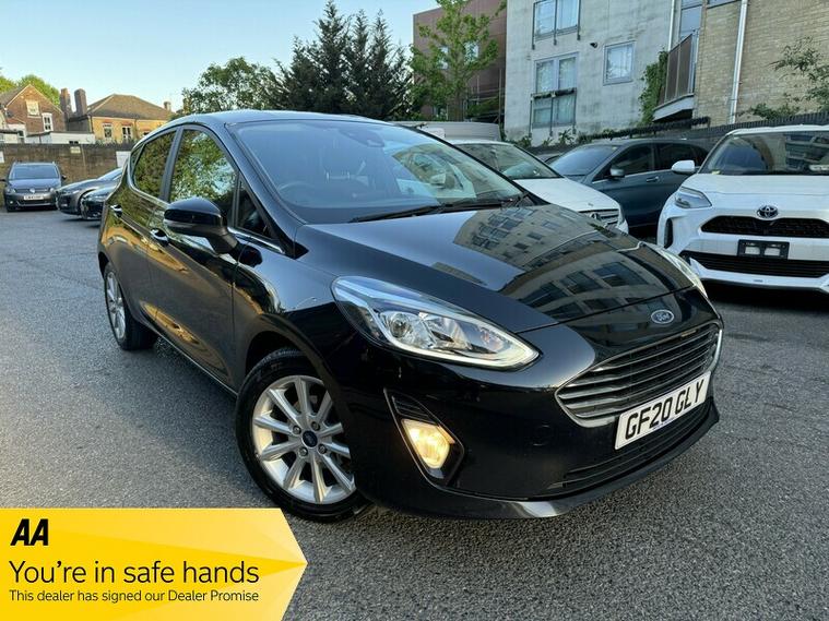 + FINANCE AVAILABLE+ STUNNING EXAMPLE WITH JUST 1 FORMER KEEPER+2 REMOTE CONTROL KEYS+SERVICE HISTORY WITH 6 SERVICE STAMPS+JUST BEEN SERVICED+MOT TILL 22/03/2027+ IT COMES WITH 6 MONTHS COMPREHENSIVE WARRANTY INCLUDING PRICE FOR COMPLETE PEACE OF MIND+ 1 YEAR A A BREAK DOWN COVER+This 2020 Ford Fiesta T Titanium offers a superb blend of efficiency and modern technology. As a Euro 6 compliant model, it features a responsive 1.0L petrol engine and is equipped with the desirable Driver Assistance Pack, which includes Blind Spot Assistance and Adaptive Cruise Control for enhanced safety and convenience. You'll also find front and rear parking sensors, a rear camera, and automatic headlights, all contributing to a more relaxed driving experience. Inside, the Ford Navigation System with Ford SYNC 3 provides seamless integration with Apple CarPlay and Android Auto, further enhanced by FordPass Connect for connected services., , This Fiesta T Titanium is designed to impress with its impressive fuel economy, achieving a highlight of 55 mpg, and its low CO2 emissions. These figures indicate that this vehicle offers a more economical and environmentally conscious choice compared to many others in its class. Furthermore, its acceleration from 0 to 62 mph in 10.6 seconds demonstrates a capable performance for everyday driving needs. The manual air conditioning ensures a comfortable cabin environment in all conditions