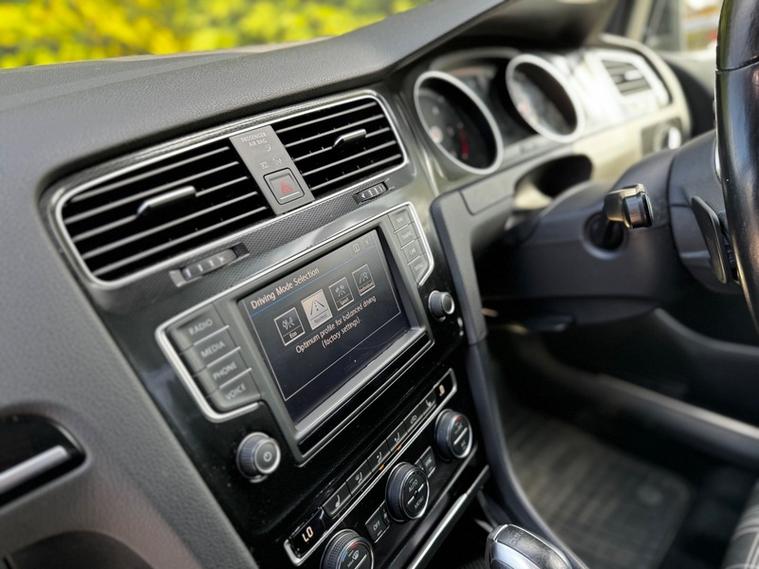 This Golf comes with great spec: it has air conditioning, speed limiter, adaptive cruise control, heated seats, electric front windows, electric mirrors, A/C, remote central locking, touchscreen display tv, bluetooth connectivity, Dab radio and USB and AUX.