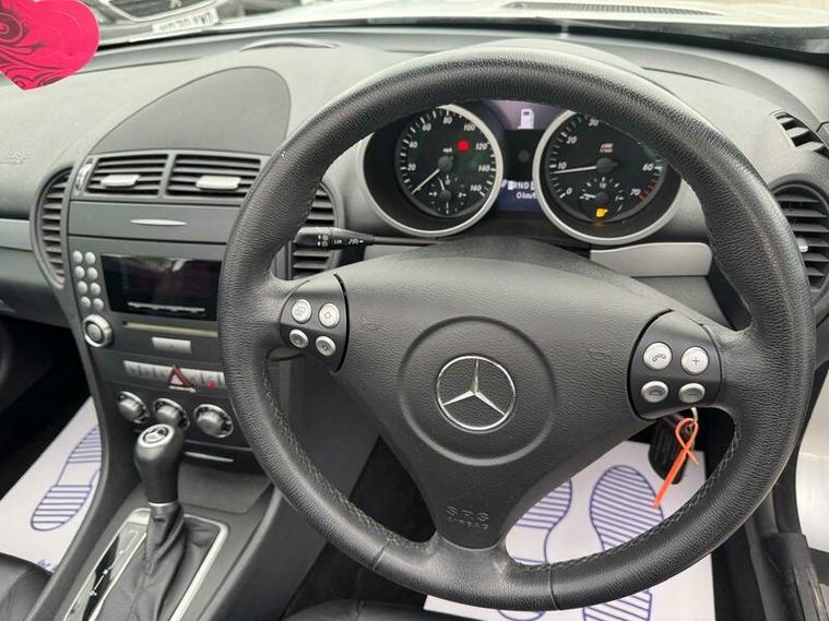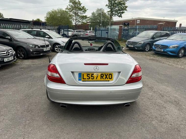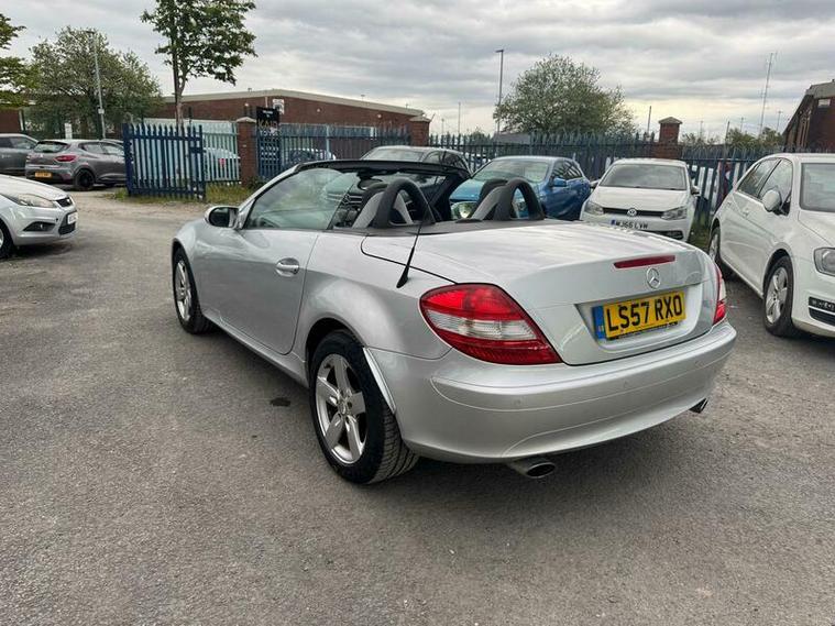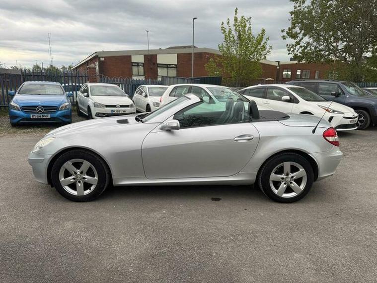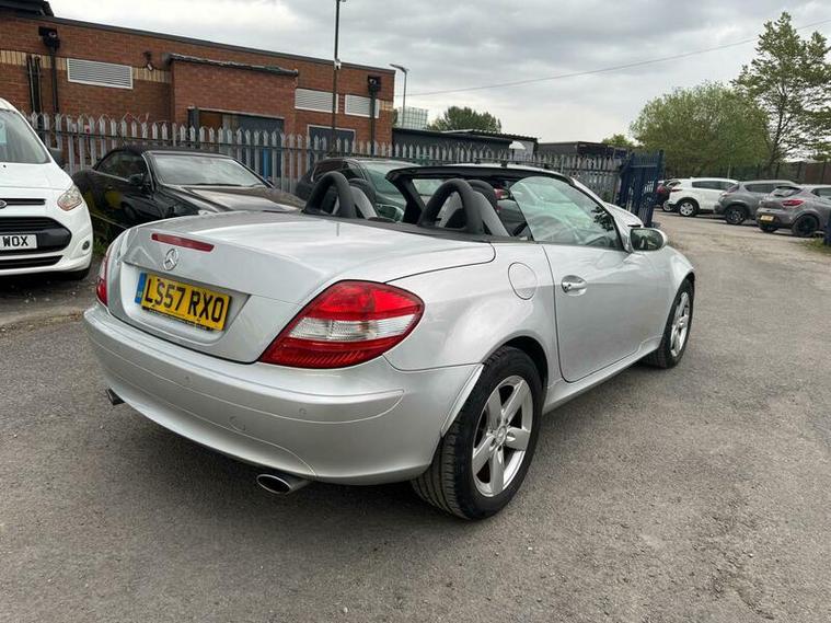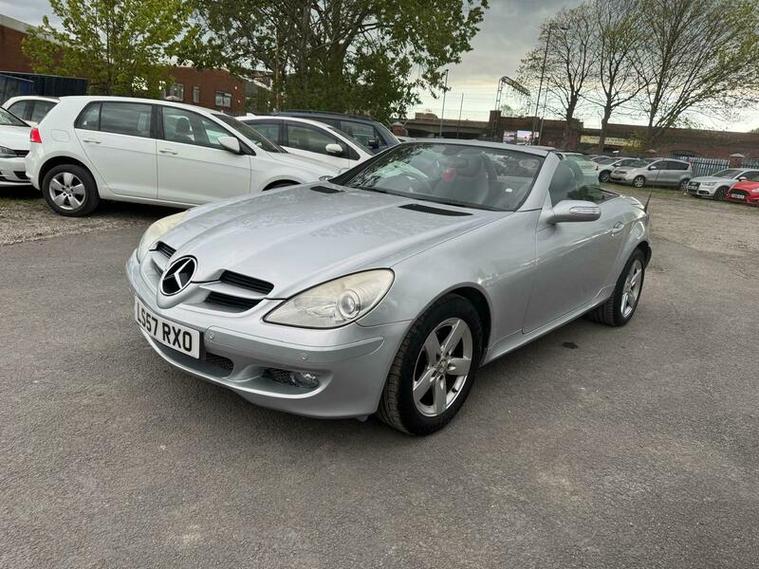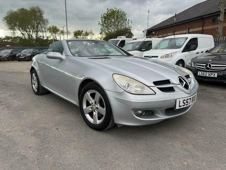2007 Mercedes SLK 200 Kompressor finished in Silver. 1.8 petrol engine with 161 BHP, 5-speed automatic gearbox and sporty performance. Reaches 140 mph, 0-60 mph in 8.3 seconds, and returns up to 32.1 mpg combined. Stylish convertible with a refined drive.