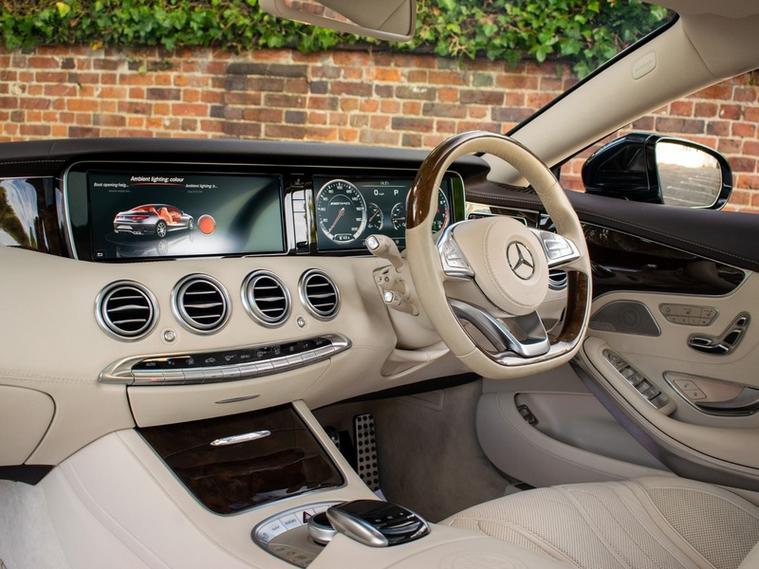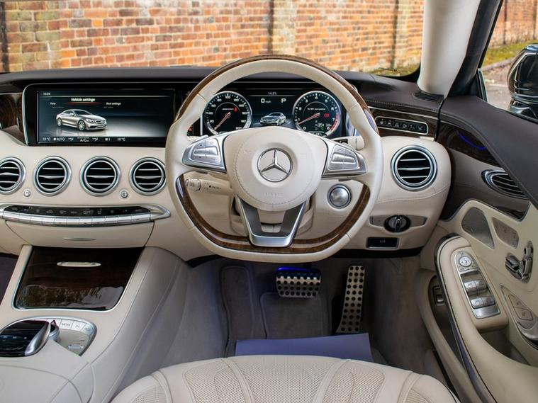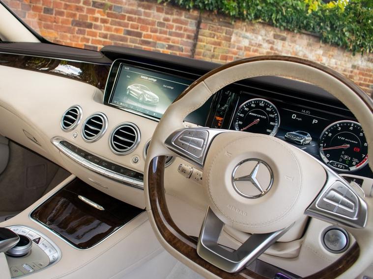 Romans of St Albans are delighted to present this Magnetite Black Metallic Mercedes S63 AMG full leather interior. Full Mercedes Benz Service History. Steering Wheel - Sports Multifunction in Wood-Leather Finish, Front Seats - Comfort Ventilated, Head-Up Display, Heated Windscreen, Headlamps - LED Intelligent Light System with Swarovski Crystals, Night View Assist, Warmth Comfort Package....