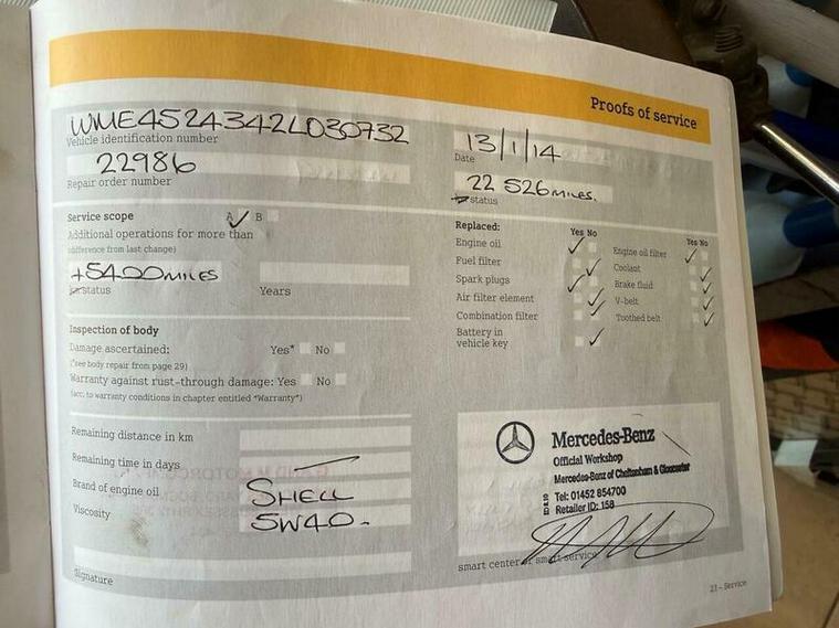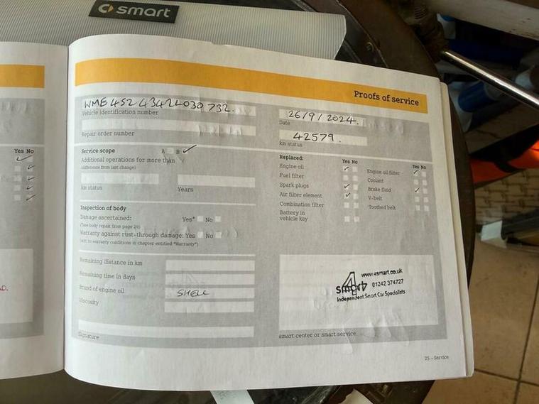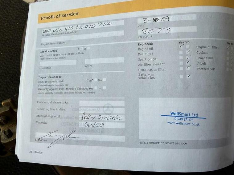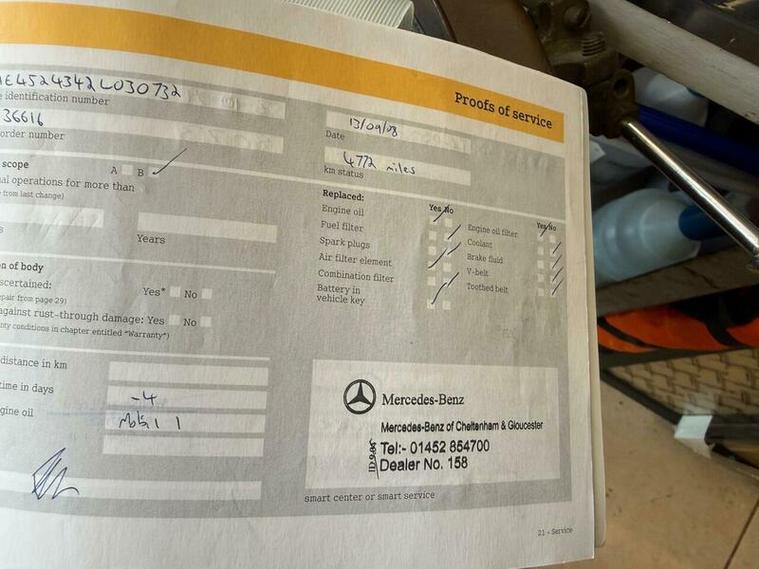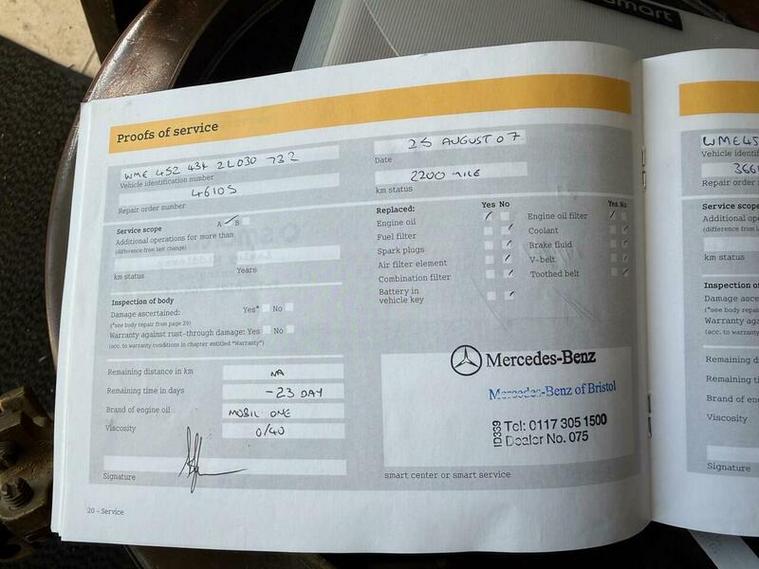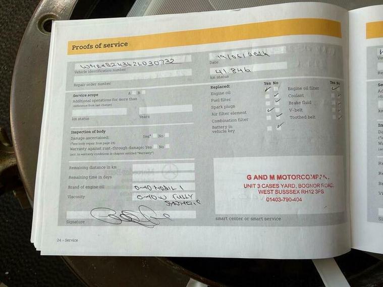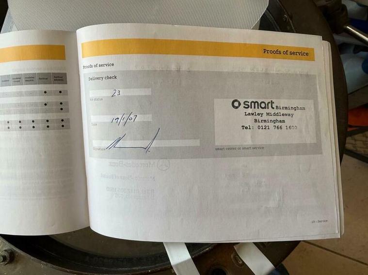 FULLY UP TO DATE SERVICE HISTORY WITH RECENT SERVICES BY '4SMART', OURSELVES, ' WELLSMART' AND MERCEDES BENZ SO ALWAYS MAIN DEALER OR SMART SPECIALIST SERVICES.