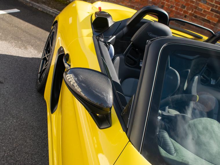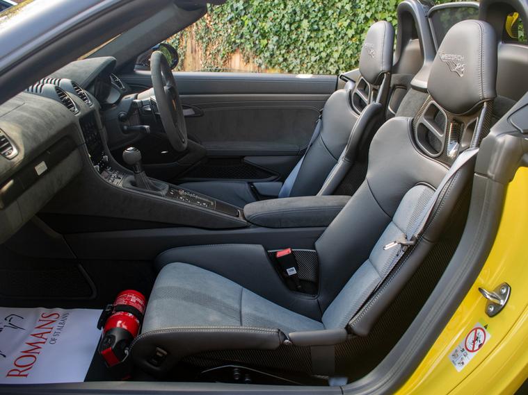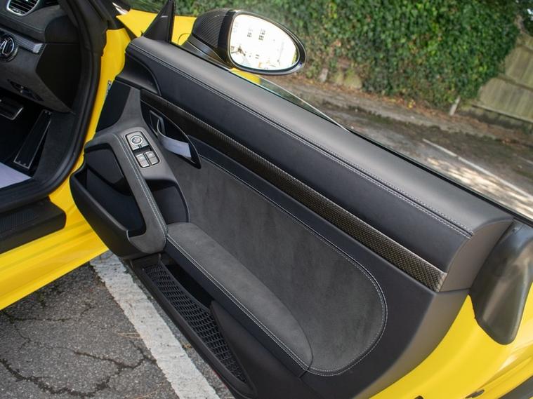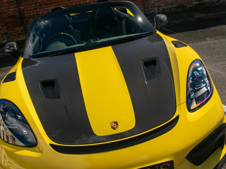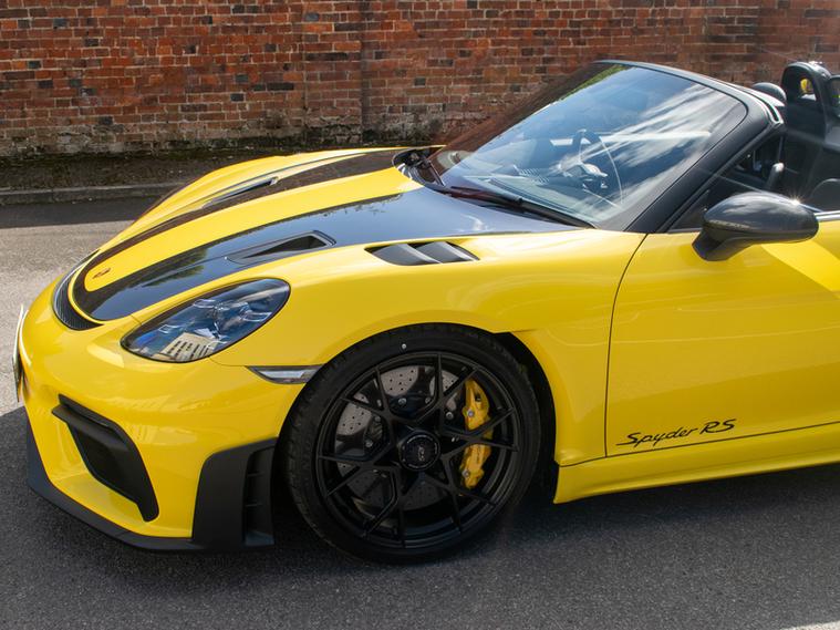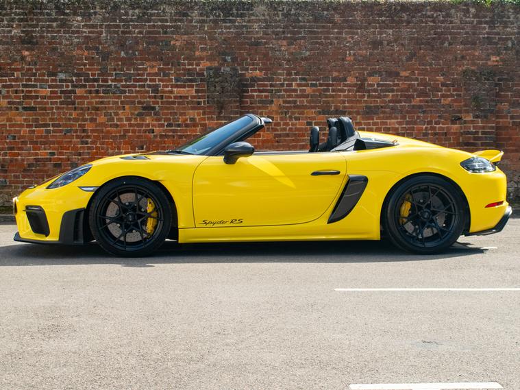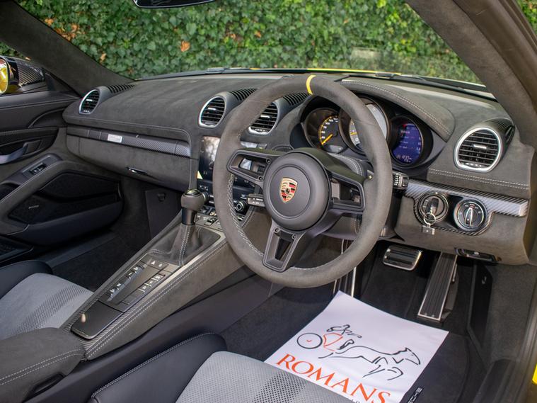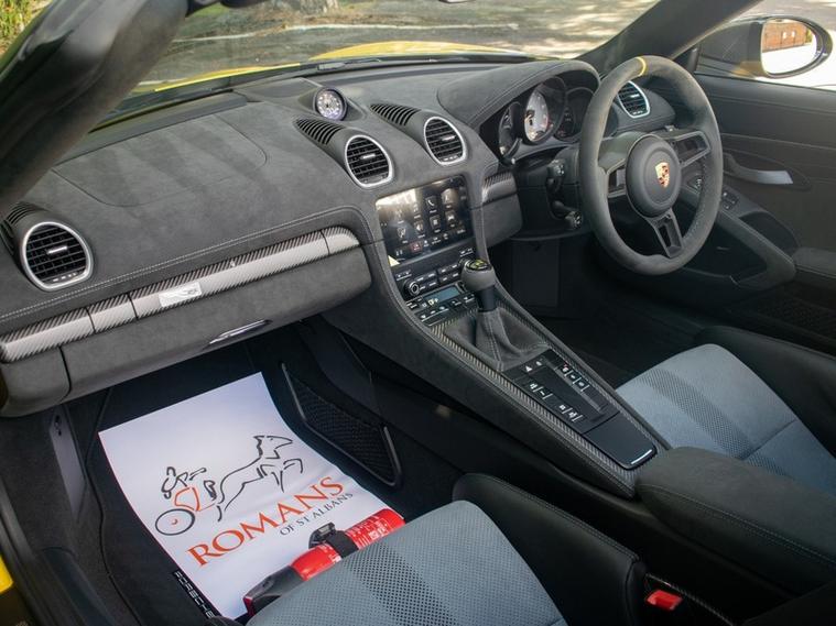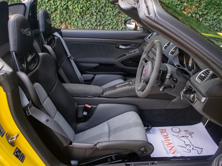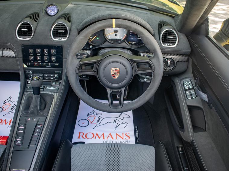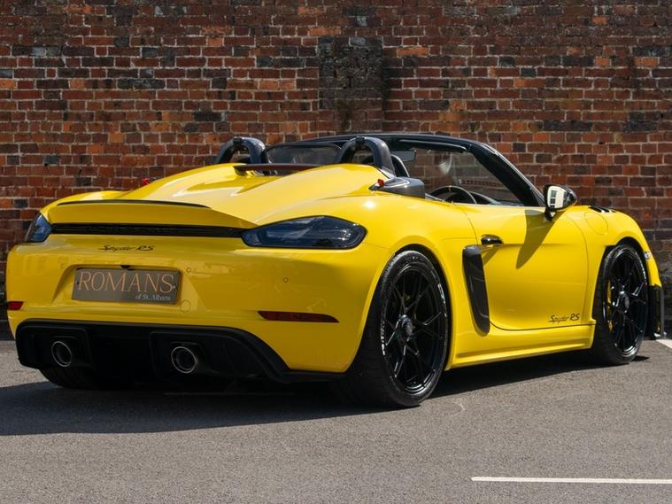 Romans of St Albans are delighted to present this 74 Plate Porsche 718 Spyder RS finished in Racing Yellow paint with Black/Arctic grey interior. As close to brand new as it gets and benefits from Porsche Warranty until 2027! This incredibly desirable example features a huge list of optional extras to include: Racing Yellow, Soft Top - Black, Weissach Package, Windscreen Frame in Black Foil, Leather Interior Weissach Package with Leather & Race-Tex, Race-Tex-Leather - Black - Arctic Grey, Full Bucket Seats, Window Triangle Trims in Carbon - Front, Bonnet in Carbon-Weave Finish with Partial Painting, BOSE Surround Sound System, Door Handles Painted in Black - High-Gloss, Front Axle Lift System, Chrono Package, PCCB - Porsche Ceramic Composite Brakes, LED Main Headlights including Porsche Dynamic Light System - PDLS, Seat Belts - Arctic Grey, Steering Column Casing in Leather, Door Sill Guards - Carbon - Illuminated, Porsche Crest on Storage Compartment Lid in Race-Tex, Fire Extinguisher, Park Assist - Rear with Reversing Camera, Light Design Package... FINANCE AVAILABLE. ULEZ COMPLIANT. FREE ON-SITE PARKING (ASK FOR DETAILS.) All of our clients have the added peace of mind that we have our own workshop facilities with free courtesy cars. Part Exchange very welcome, nationwide delivery also available. To avoid a wasted journey we highly recommend making an appointment, so call us now to get yours booked! Romans provide the highest of quality vehicles, and have at least 80 cars in stock at any one time. This means not all cars can be kept on site. This will also allow us to give you our fully undivided attention when viewing the vehicle you are interested in, WE ARE LOOKING TO BUY YOUR TOP SPEC, LOW MILEAGE, FULL SERVICE HISTORY PRESTIGE, SPORTS, AND 4X4 VEHICLES. GET MORE FOR YOUR VEHICLE BY EITHER SELLING TO US, OR ASKING US TO SELL YOUR VEHICLE FOR YOU. PRIVATE BUYERS WANT WARRANTIES, THEY WANT TO PART EXCHANGE, THEY WANT FINANCE - TAKE ADVANTAGE OF ALL OUR FACILITIES. CALL US NOW TO DISCUSS GETTING RID OF YOUR VEHICLE QUICKLY.