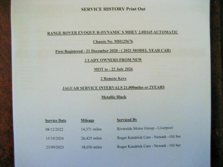 December 2020 (2021 MODEL YEAR) Just 38, 000 miles Complimented by 3 Services to 38, 000miles September 2025 - 2 Lady Owners from New (Last one being my wife) - Metallic Ultimate Black with Charcoal Premium Leather Seating - R-Dynamic Body Styling - Black Pack - Latest 165bhp Model 4 Wheel Drive - Latest Large Colour Screen Satellite Navigation with Apple Car Play Facility- Electric Heated Seats - Multi Function Leather Steering Wheel with Audio/Bluetooth Functions - Voice Activation - Bluetooth - Rear View Camera - Rear Privacy Glass - Multi Spoke R-Dynamic Sport Alloy Wheels - Costing New in Excess of £40, 000 - 360 Cameras allround view - 2 Keys - Digital Dash with Dual Navigation Map Views - PART EXCHANGE - FINANCE OPTIONS - WARRANTY - Call Roger on 01158863792 for more details - Part Exchange - Warranty - Finance Available, 3 months warranty, Next MOT due 22/07/2026, Full service history, Excellent bodywork, Interior - Excellent Condition, Tyre condition Excellent, Four wheel-drive, 5 seats, Ultimate Black with Charcoal Premium Leather, 2 owners, Upgrades - Privacy Glass, 18in Alloy Wheels - 5-Split Spoke - Style 5075 - Gloss Sparkle Silver, ClearSight Interior Rear View Mirror, Standard Features - 10in Touchscreen, 12-Way Heated Electric Front Seats with 2-Way Manual Headrests, 18in Alloy Wheels - 5-Split Spoke - Style 5074 - Gloss Sparkle Silver, 3D Surround Camera, ABS - Anti Lock Braking System, ATPC - All Terrain Progress Control, Airbags - Front - Driver and Front Passenger, All Season Tyres, Analogue Dials with Central TFT Display, Android Auto, Apple CarPlay, Auto-Dimming Interior Rear View Mirror, Bluetooth Connectivity, Body Coloured Roof, Bright Metal Pedals, Cabin Lighting, Carpet Mats, Chrome Treadplates, DAB - Digital Audio Broadcast, Driver Condition Monitor, EPAS - Electronic Power Assisted Steering, Efficient Driveline, Electric Windows with One-Touch Open-Close and Anti-Trap, Emergency Braking, Front and Rear Parking Aid, Headlining - Ebony Morzine, Heated Electric Power Fold Door Mirrors with Approach Lights and Auto-dimming Driver Side, Intrusion Sensor, LED Headlights, Lane Keep Assist, Locking Wheel Nuts, Manual Headlight Levelling, Manual Tailgate, Manually Adjustable Steering Column, Online Pack with Data Plan, Passive Suspension, Perforated Leather Steering Wheel, Pivi Pro - Connected, Power Socket Pack 1, R-Dynamic Exterior Pack, Rear Animated Directional Indicators, Rear ISOFIX, Remote, Satin Chrome Gearshift Paddles, Secure Tracker - 12 Month Subscription, Sound System, Standard Roof, TPMS - Tyre Pressure Monitoring System, Terrain Response 2, Traffic Sign Recognition and Adaptive Speed Limiter, Trim Finish - Gradated Linear Dark Aluminium, Two-Zone Climate Control, Tyre Repair System, Wade Sensing, Windscreen - Heated, Windscreen Washer Jets - Heated, - For Further Information or to book an appointment to view - please call Roger direct on 01158863792 - Most times available by prior appointment