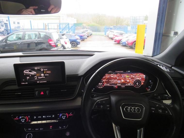 This 2018 Audi Q5 TDI S line offers a compelling blend of performance and practicality, Under the bonnet, a robust 2.0 litre diesel engine powers this Four Wheel Drive SUV, ensuring confident handling in all conditions. As a Euro 6 compliant vehicle, it meets stringent emission standards, and with a generous towing weight of 2400 kg, it's ready for your adventures. The S line trim level enhances its appeal with a host of desirable features, including Deluxe 3-Zone Climate Control, automatic LED headlights with dynamic rear indicators, and the convenience of a Bluetooth interface. Parking is made effortless with the Audi Parking System Plus, featuring both front and rear sensors., , Experience the efficiency of this Q5, which achieves an impressive 55 miles per gallon, a highlight that sets it apart from many others in its class. Its acceleration from 0 to 62 miles per hour in just 7.9 seconds demonstrates its responsive performance. You'll also appreciate the substantial boot space, perfect for luggage or shopping. Furthermore, its low CO2 emissions contribute to a more environmentally conscious drive. This Audi Q5 comes with a 3 month warranty, providing added reassurance for your purchase., 3 months warranty, Clean bodywork, Black Part leather interior - Excellent Condition, Tyre condition Excellent, Four wheel-drive, 5 seats, Grey, 3 owners, Upgrades - Leather-Alcantara - Black with Rock Grey Stitching, Audi Phone Box with Wireless Charging, Technology Package, 19in Alloy Wheels - 5-Spoke Dynamic Design - Diamond Cut, Door Mirrors - Folding with Auto-Dimming and Memory Function, Standard Features - Service History, Just serviced including new cambelt and water pump, MMI Navigation - SD Card Based, MMI Radio Plus with 7in Colour MMI Screen and MMI Controller, Colour Drivers Information System with 7in Display, Power Operated Tailgate, S-Line Half Lather Half Alcantara Interior, Heated Front Seats, Cruise Control with Speed Limiter, Deluxe 3-Zone Climate Control, Privacy Glass with Acoustic Glazing For Front Windows, Audi Parking System Plus, Audi Sound System, Audi Smartphone Interface, Bluetooth Interface, Voice Control System, Audi Drive Select, ESC - Electronic Stabilisation Control inc ABS - ASR and EDL, Dynamic Suspension, High Multi-function 3-Spoke Leather Steering Wheel with Grips in Perforated Leather and S Badging with Gear-Shift Paddles, Aluminium Roof Rails, 19' Alloys, Door Mirrors - Electrically Adjustable and Heated with Integrated LED Side Indicators, Electric Windows - Front and Rear, Auto-Dimming Rear-View Mirror, Automatic Headlight Adjustment, Light and Rain Sensor, LED Headlights with LED Rear Lights and Dynamic Rear Indicators, DAB Digital Radio, 2 x SDXC Card Readers, 2 x USB Charging Ports and 1 x AUX-IN, 4-Way Electric Lumbar Support, 6-Airbag System, Anti Theft Locking Wheel Bolts, Anti-Theft Alarm, Audi Pre-Sense City, Body Coloured Door Mirrors, CD Drive, Cloth Headlining in Black, Contrast Stitching on Seats - Steering Wheel and Gear Lever Gaiter, Electric Boot Lid Release, Electromechanical Parking Brake, Electromechanical Power Steering, Email - Calendar and Text Messages can be Displayed on your Vehicles MMI, First Aid Kit and Warning Triangle, Front Centre Armrest, Front Sports Seats with S Embossed Logo, Front and Rear Floor Mats, Gear Lever Knob in Black Perforated Leather, High-Gloss Package, Hill Descent Control, Hill Hold Assist, ISOFIX Child Seat Mounting and Top Tether, Illuminated Door Sill Trims with S Logo, Inlays - Matt Brushed Aluminium, Keyless Go, LED Interior Lighting Pack, LED Rear Lights, Manual Seat Adjustment, Pedals in Stainless Steel, Pop-Up Bonnet for Pedestrian Protection, Radiator Grille in Twilight Grey with Horizontal Matt Aluminium Struts, Rear Diffuser in Body Colour with Matt Aluminium Silver Surrounds, Remote Central Locking, Removable Luggage Compartment Floor, Removable Net Partition, S Line Badges on the Front Wing Panels, S Line Front and Rear Bumpers, S Line Roof Spoiler, S Line Side Skirts, Seat Belt Monitoring, Side and Rear Windows in Heat-Insulating Glass, Split Folding Rear Seat Bench - 40-20-40 with Rear Seat Armrest, Stainless Steel Loading Sill Protector, Tool Kit and Car Jack, Tow Bar Preparation, Tyre Pressure Warning Light, Tyre Repair Kit, Underbody Protection in Body Colour, Windscreen with Acoustic Glass, quattro On Demand, dealer's website Usual Dealer Facilities, AA Roadside Assistance, Warranties and Finance Available