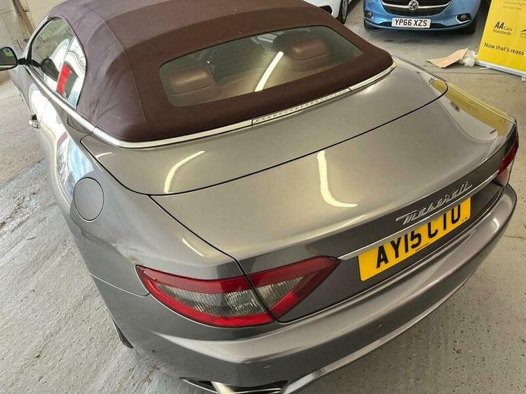 This 2015 Maserati GranCabrio V8 Sport offers an exhilarating driving experience with its powerful 4.7 litre petrol engine. As a Sport trim model, it comes equipped with desirable features such as Bluetooth for audio streaming, automatic headlight activation, and electric door opening assist for convenient keyless entry. You can also enjoy the comfort of dual zone automatic climate control with rear air outlets and the reassurance of rear parking sensors.