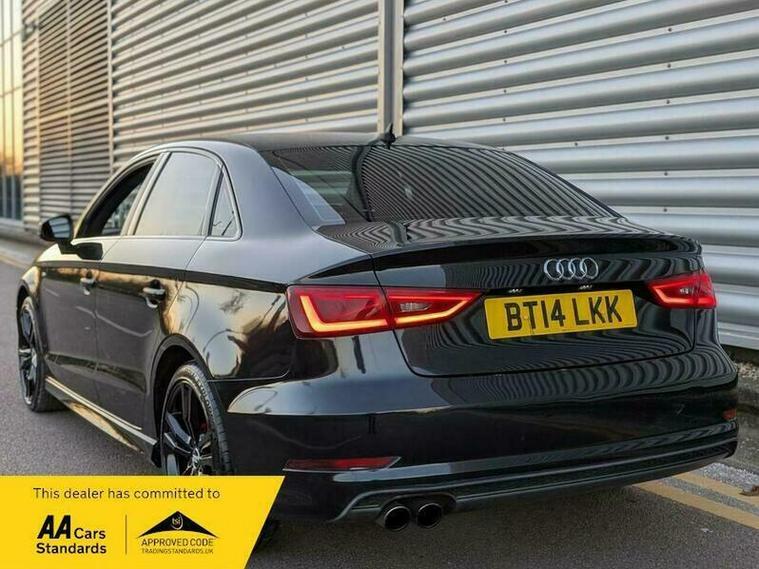 This is an Audi A3 S line TFSI, registered in 2014. As a car with the S line trim, it boasts a sporty aesthetic and enhanced features. The vehicle is equipped with LED headlights, including specific LED headlight designs, ensuring excellent visibility and a modern look. Audi Hill Hold Assist provides added convenience and safety on inclines. The Black Styling Package adds a touch of sophistication, complemented by 18-inch alloy wheels with a distinctive 5-Arm Structured Design in high gloss. Privacy glass enhances both the style and the privacy of the occupants.