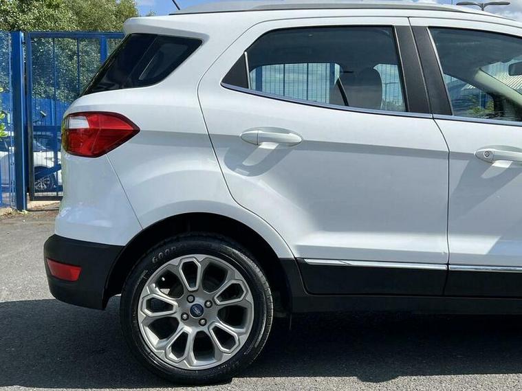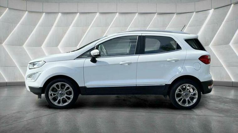 Stay effortlessly connected through the advanced SYNC system with Bluetooth and DAB radio, while the automatic lights add convenience to every drive. The eye-catching white exterior accentuates the EcoSport's bold SUV styling, complete with the distinctive rear-mounted spare wheel that hints at its adventurous character.