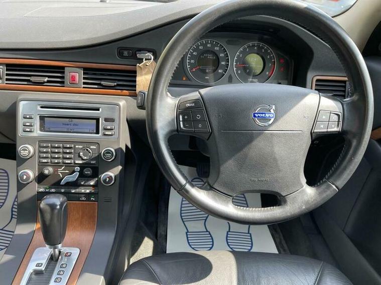 This is a description of a 2007 Volvo V70 SE Lux, a spacious car with a 3.2L petrol engine. It boasts a full service history and has had only two owners from new. For added peace of mind, the vehicle has a clear vehicle history check and a MOT valid until August 2025. The last service was completed on 12th August 2024, at 6, 441 miles. This SE Lux trim includes Bi-Xenon headlights with a headlight cleaning system for enhanced visibility, and rear park assist to make parking easier.