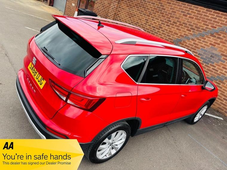 With a full service history and a recent service carried out in July 2025 at 71, 035 miles, this 2018 SEAT Ateca 1.0L Petrol TSI SE L is ready for its next owner. This Euro 6 compliant vehicle comes with a 12-month warranty and a valid MOT until April 2026, offering peace of mind. The SE L trim includes desirable features such as Park Assist, incorporating front and rear parking sensors to make parking effortless. Full LED headlights provide enhanced visibility, while Keyless Entry and Go, along with a wireless phone charger, add convenience to your daily journeys. Stay connected with Full Link, which includes Android Auto and Apple CarPlay, and enjoy the ease of automatic headlights thanks to the Convenience Pack., , This Ateca stands out with its low CO2 emissions, making it an environmentally conscious choice. The impressive fuel economy of 52 mpg means fewer trips to the petrol station, saving you money. In addition, the large boot space offers practicality, ensuring you have ample room for luggage, shopping, or anything else you need to transport., 12 months warranty, Next MOT due 14/04/2026, Last serviced on 04/07/2025 at 71, 035 miles, Full service history, Good bodywork, Black Full leather interior - Good Condition, Tyre condition Good, 5 seats, Metallic Red, 2 owners, Upgrades - Leather Sports Seats - Black, Standard Features - 12V Socket in Front, 17in Alloy Wheels - Dynamic, 3.5in Drivers Display, Active Front Head Restraints, Alarm - Perimeter and Interior Monitoring, Ambient Spot Lighting and Front Footwell Illumination, Anti-Lock Braking System - ABS, Armrest with Air Outlet in Rear, Automatic Headlight Adjustment, Chrome Dashboard Detailing, Comfort Suspension, Convenience Pack, Cruise Control, Dark Tinted Rear Windows, Digital Clock, Door Mirrors and Door Handles in Body Colour, Door Mirrors with Welcome Light Silhouette, Driver and Front Passenger Airbags, Driver and Passenger Seat with Lumbar Adjustment, Driver and Passenger Sunvisor with Card Holder for Driver, Driver and Passenger Sunvisor with Covered and Illuminated Mirrors, Drivers Knee Airbag, Dual Zone Climate Control, Electric Parking Brake Including Autohold Function, Electrically Adjustable Folding and Heated Door Mirrors, Electronic Differential Lock System - XDS, Electronic Stability Control - ESC, Four Cargo Rings in the Boot, Front Armrest - Adjustable with Storage Compartment, Front Assist - City Emergency Braking and Pedestrian Protection, Front Courtesy Light with Front and Rear Reading Lights, Front Cup Holders, Front Grille Frame - Chrome, Front LED Fog Lights with Cornering Function, Front Passenger Airbag De-Activation, Front Seat Back Storage Pockets, Front Side Airbags, Front and Rear Electric Windows, Front and Rear Seatbelt Reminder, Fuel Door Linked to Central Locking, Full LED Headlights, Full Link, Gear Recommendation Indicator, Height Adjustable Front Headrests, Height Adjustable Passenger Seat, Height-Adjustable Drivers Seat, Hidden Exhaust Pipe, Hill Hold Control, ISOFIX Points in Outer Rear Seats with Top Tether Anchorage Points, Illuminated Boot, Illuminated Glovebox, Instrument Lighting with Brightness Control, Keyless Entry and Go - KESSY and Wireless Phone Charger, LED Daytime Running Lights, LED Taillights, Leather Gear Knob, Leather Steering Wheel, Lights Left On Warning Buzzer, Locking Wheel Bolts, Low Fuel Warning Light, Matt Black Grille, Navigation System, Outside Temperature Gauge, Park Assist, Power Locking and Remote Control with Two Foldable Keys and Opening Boot Selector - 3 Buttons, RPM Counter, Rear Armrest and Easy Back Seat Release Mechanism From Boot, Rear Fog Light, Rear Reading Lights, Rear Spoiler, Rear Wash - Wipe, Roof Rails - Chrome, Split Folding Rear Seats - 60-40, Steering Wheel-Mounted Audio and Phone Controls, Storage Box Under Drivers Seat, Sunglasses Storage Compartment in Roof Console, Tinted Windows, Tiredness Recognition System, Traction Control System - ASR, Trip Computer, Two Curtain Airbags, Tyre Pressure Monitoring System, USB Media Cable, Wheel Arch Surrounds - Black, Window Surrounds - Chrome, Winter Pack, 12 Month parts & warranty that can be used throughout the U.K on all of our cars, PART EXCHANGE WELCOME