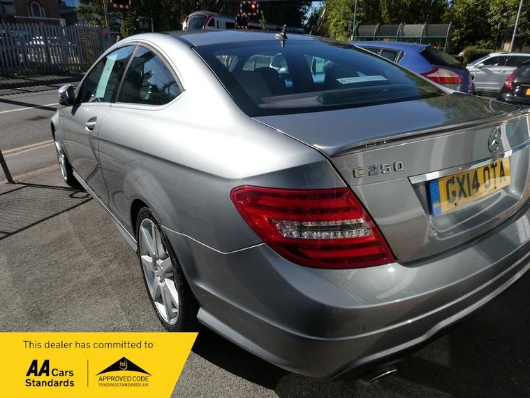 Just Arrived..2014/14 Immaculate condition Mercedes C250 CDi AMG Sport Premium. Presented in Unmarked Metallic Grey, AMG Alloys, Alcantara Interior with special blue and grey stitching, Sat Nav, Heated Seats, Reverse Camera, Auto Dim Rear Mirror, Folding mirrors, Bluetooth, Steering Wheel Controls..Absolutely stunning looking car giving great performance and economy. Part exchange possible Passed MOT with no advisories, Six Months national warranty and breakdown cover, extended warranties available.