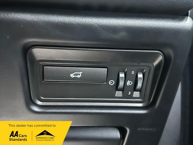 Huge specification including: Heated seats, dual zone climate controlled air conditioning, quick-clear heated windscreen, touch screen sat nav, DVD player, CD player, DAB radio with Meridian speakers, aux/iphone/usb input, keyless start/stop, panoramic glass sunroof with electric blind, off-road settings, cruise control, traction control, hill descent control, electric hand-brake with auto-release, on-board computer, electric windows, electric mirrors, automatic headlights, automatic wipers, height & reach adjustable steering wheel, drinks holder, 12v power supply, driver & passenger armrest with storage & 12v power supply, twin illuminated vanity mirrors, steering wheel mounted stereo, cruise & phone controls, multiple airbags, storage pockets in rear of front seats, 3 x 3 point rear seat belts, isofix, 60/40 split folding rear seats, rear armrest with drinks holder & storage compartment, individual rear reading lights, 12v power supply in boot, remote locking & alarm, fully colour coded.