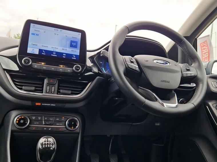This 2023 Ford Fiesta Titanium X is a superb example, having had only one owner since new. It boasts a 1.0 litre petrol hybrid engine, meeting Euro 6 emissions standards, and benefits from an MOT valid until April 2026, offering peace of mind. Inside, you'll find comfort and convenience with Electronic Automatic Temperature Control air conditioning and the Ford Key Free System for keyless entry and start. The Titanium X trim also includes LED headlights with integrated daytime running lights and fog lights, enhancing visibility. Experience a responsive drive with the Fiesta's impressive 0-62mph acceleration in just 9.4 seconds, a performance that sets it apart from many in its class. The SYNC 3 system with navigation is a standout feature, seamlessly integrating Android Auto and Apple CarPlay for effortless connectivity. Furthermore, the inclusion of a rear view camera with parking assistance makes manoeuvring and parking simpler and more secure.