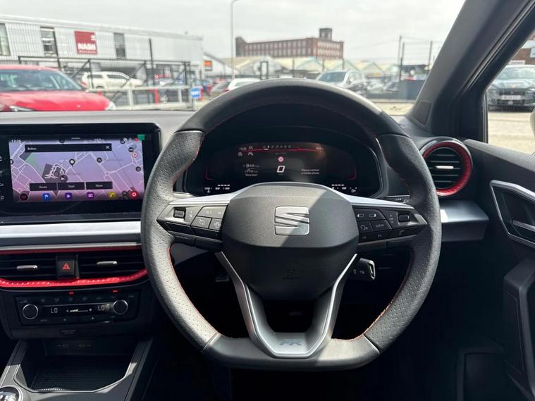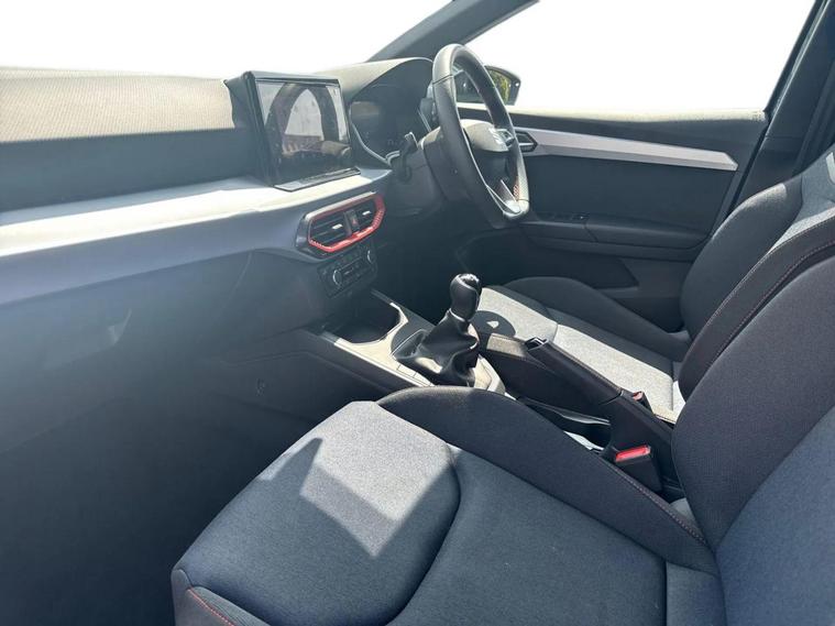 This 2025 SEAT Ibiza 1.0L Petrol TSI FR is practically brand new. As a Euro 6 compliant vehicle, this Ibiza FR combines sporty styling with modern technology. The car includes Bluetooth Audio Streaming with Handsfree System, so you can stay connected on the move, and Dual Zone Climate Control, ensuring both driver and passenger comfort, offering peace of mind for years to come. This SEAT Ibiza stands out with its impressive fuel economy of 53 mpg, meaning fewer trips to the petrol station. The low CO2 emissions are better for the environment, and the large boot space makes it more practical than other similar vehicles in its class. This Ibiza offers a compelling blend of performance, economy, and practicality.
