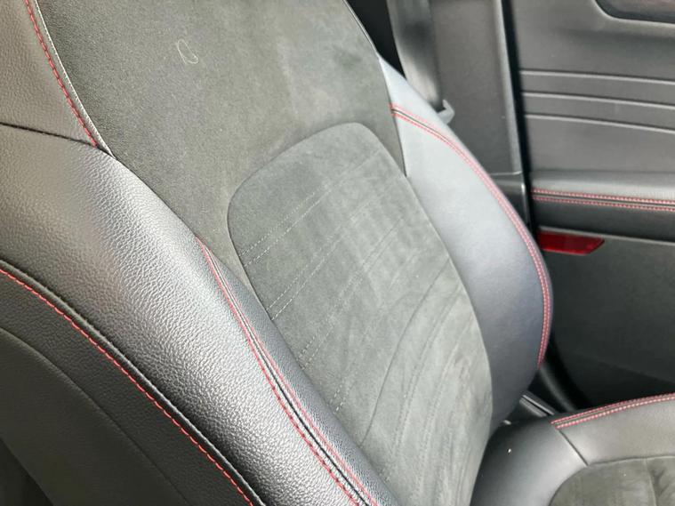 - Partial premium touch sensico leather upholstery with black cloth inserts and red stitching